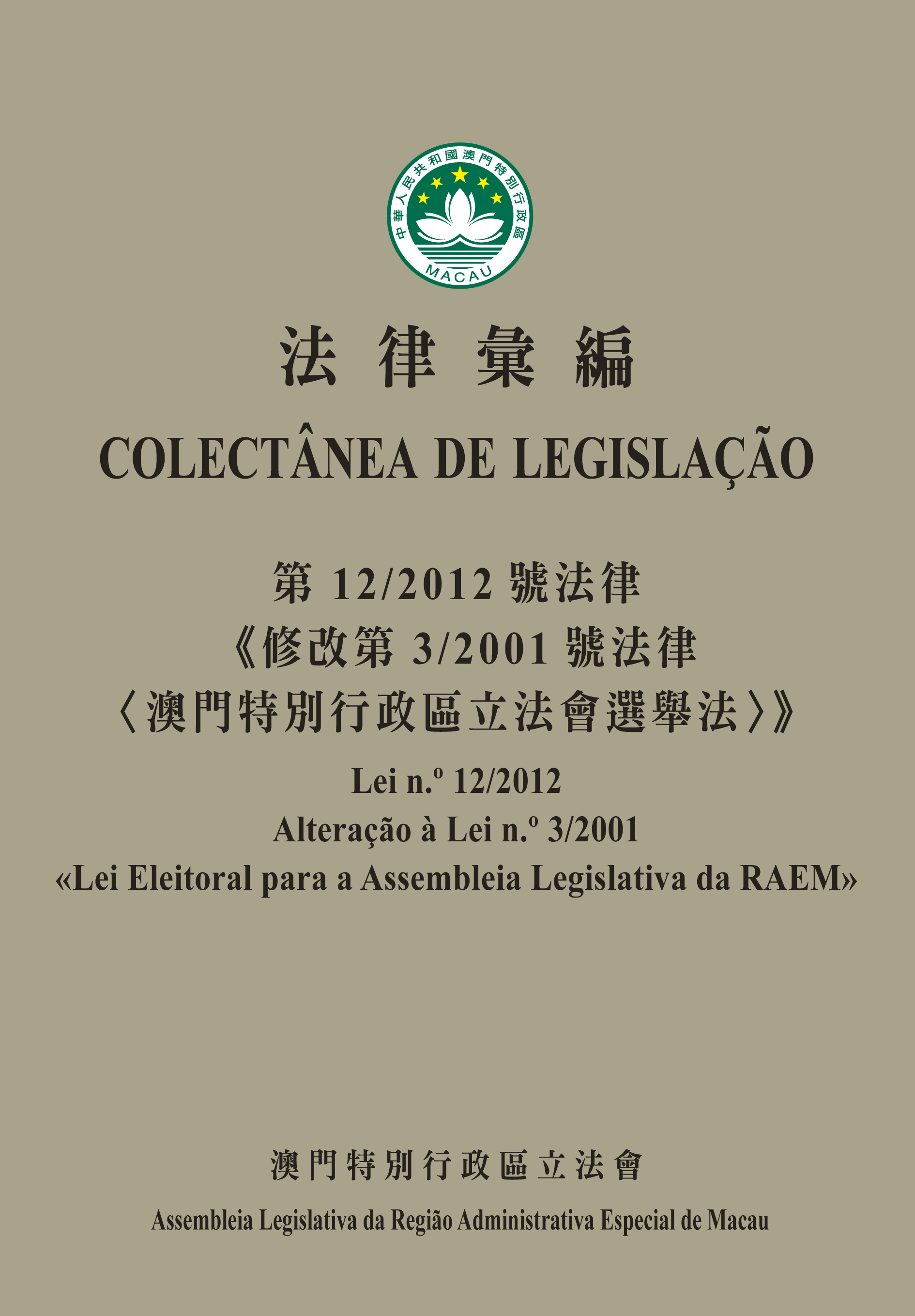 Assumindo a sua função de divulgação do Direito, a Assembleia Legislativa tem procedido à publicação sucessiva de colectâneas de legislação, função essa que vai continuar a concretizar através do lançamento de outras. A colectânea que agora é alvo de publicação diz respeito à Lei n.º 12/2012 (Alteração à Lei n.º 3/2001 «Lei Eleitoral para a Assembleia Legislativa da Região Administrativa Especial de Macau»).
