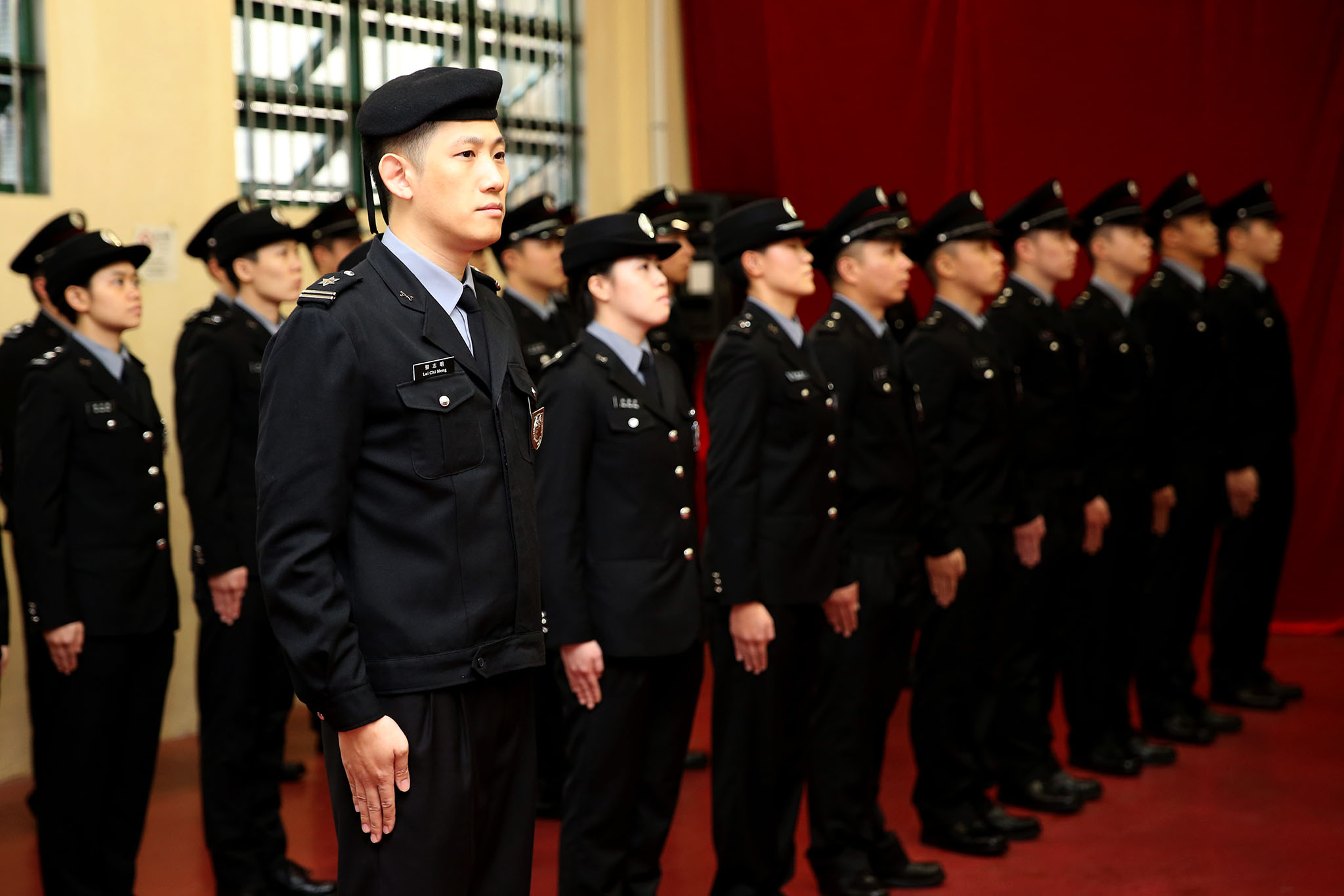 O grupo de guardas recém graduados que tomaram posse, composto por 32 do sexo masculino e 19 do feminino, iniciou a formação no ano passado. Devido às características profissionais e necessidades concretas do trabalho de guardas prisionais, durante a fase de formação básica de 2 meses, foram submetidos a treinos e provas de conhecimentos jurídicos, militares, educação moral e linguísticas, etc.; A seguir, os instruendos tiveram formação profissional de 6 meses, frequentando os cursos relacionados com as suas funções específicas, incluindo cursos de desenvolvimento do raciocínio, tais como: psicologia criminal, gestão emocional, etc.. Por fim, o estágio profissional obrigatório de 3 meses, visa facilitar aos instruendos o conhecer das características dos diversos postos de trabalho na prisão, com trabalho prático, permitindo-lhes aplicar os conhecimentos adquiridos.