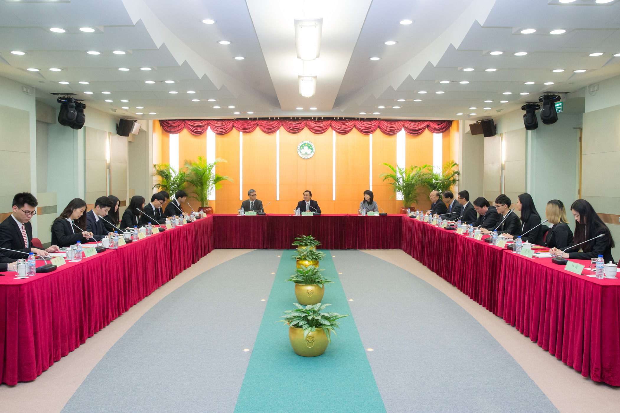 O reitor da Universidade de Macau, Zhao Wei, a chefe de divisão dos Assuntos de Estudantes, Chau Kwai Chee e o chefe funcional dos Assuntos de Admissão de Pós-graduação, Samson Cheong, marcaram presença no encontro.