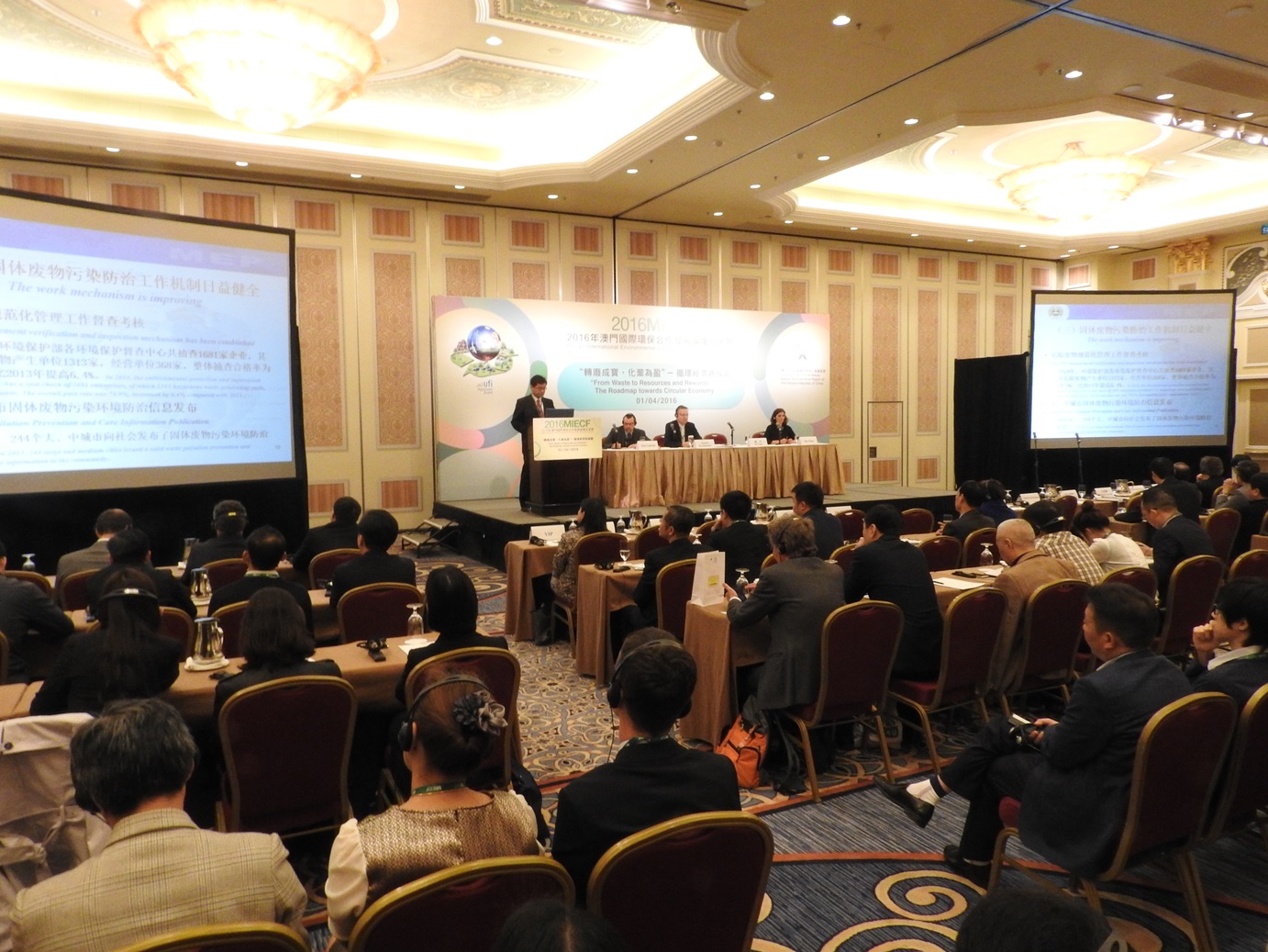 Foram, hoje (dia 1 um de Abril), realizadas as seguintes sessões no âmbito do Fórum Verde: “From Waste to Resources and Rewards – The Roadmap towards Circular Economy”, “Building with less – Sustainable Waste Solutions for Green Forum – Treatment of Chemical Solid Waste and Hazardous Waste” e “Pan-Pearl River Delta Region (PPRD) Session – Solid Waste Management Policies and Technology in the Pan-Pearl River Delta Region”. Conforme os especialistas e académicos presentes nas diversas sessões do Fórum Verde, os resíduos de construção contêm acima de 80 por cento-90 por cento de recursos renováveis, pelo que, se toda a sociedade fizer a reutilização dos resíduos de construção, poderá ajudar a reduzir em cinco por cento o consumo de recursos naturais. De acordo com as estimativas das entidades competentes, baseada na actual quantidade de emissões geradas pelos resíduos de construção, em cada ano, se, em 2020, esses resíduos de construção pudessem ser convertidos em materiais de construção renováveis, poderão gerar valores da ordem dos 1 bilião de renminbi. “Construção”, uma sessão especial com o Prof. Dr. h. c. Walter R. Stahel: “Gestão de resíduos via internet plus” (Enhancing Waste Mangement through Internet Plus).