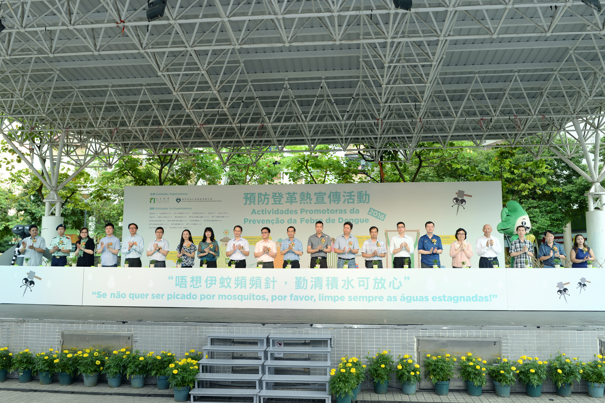 O Grupo de Trabalho para a Prevenção Contra a Febre Dengue realizou, hoje (dia 7 de Maio), no Jardim do Mercado Municipal do bairro Iao Hon, uma campanha de sensibilização sobre a prevenção da febre de Dengue para o ano 2016, intitulada «Se não quer ser picado por mosquitos, por favor, limpe sempre as águas estagnadas». Esta actividade integra uma exposição de fotografias, bancas de jogos e espectáculos, com o intuito de elevar a consciencialização da população em relação à prevenção da doença e eliminar as águas estagnadas em casa, numa cooperação com os trabalhos do Governo no controlo e prevenção da doença, bem como, diminuir a taxa de doentes e a possibilidade de transmissão, em Macau.