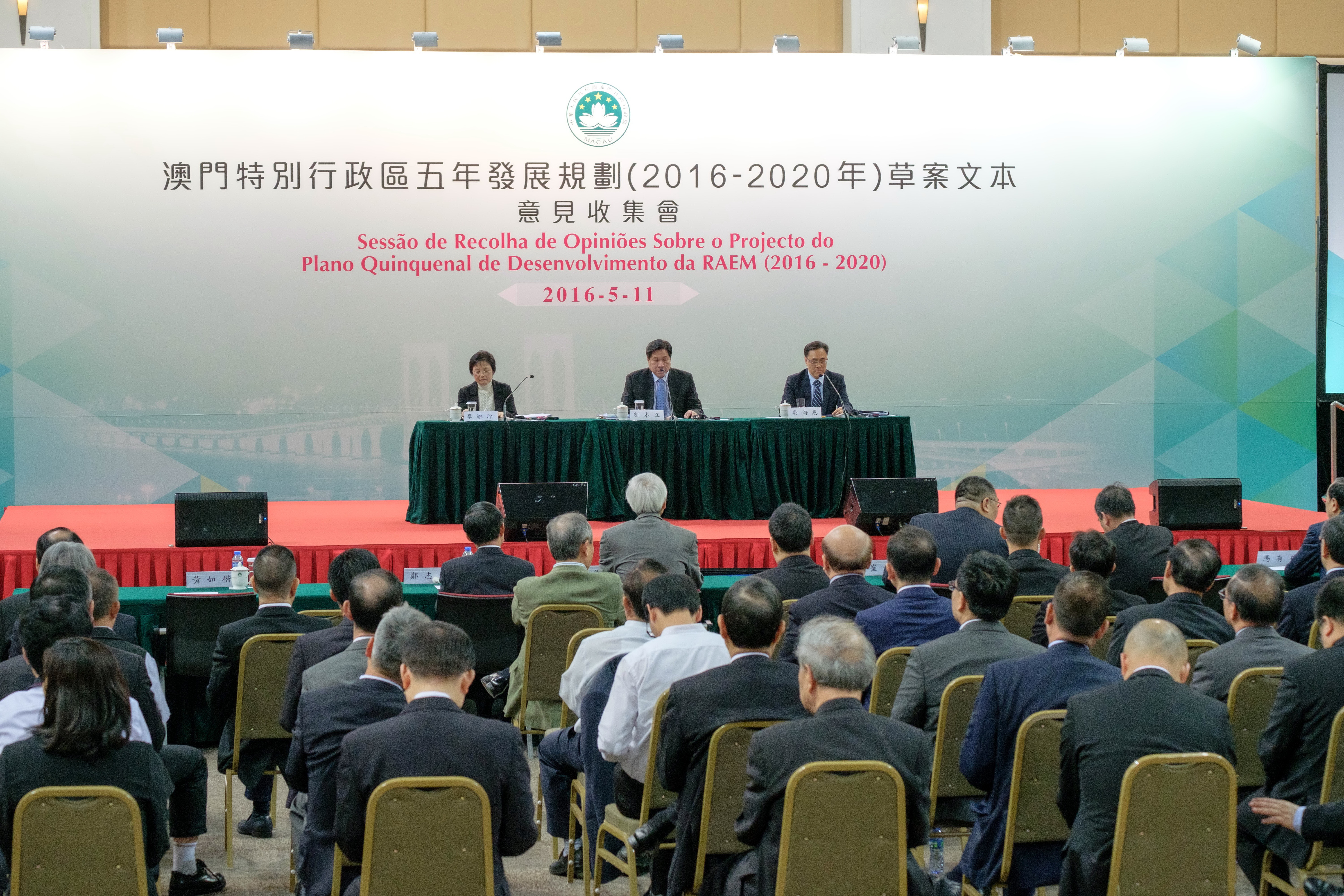 O projecto do Plano Quinquenal de Desenvolvimento da Região Administrativa Especial de Macau (2016-2020) foi já divulgado no passado dia 26 de Abril, tendo assim iniciado os trabalhos da recolha de opiniões, com a duração de 2 meses. O Plano Quinquenal é o plano geral de desenvolvimento da RAEM para os próximos cinco anos e o programa de acção de cooperação entre o Governo e a população. Assim, uma ampla auscultação junto dos diversos sectores da sociedade, unindo o consenso e reunindo as forças da sociedade, são factores muito importantes para a definição e concretização do Plano Quinquenal. Desta forma, o Gabinete de Estudos das Políticas, responsável pelos trabalhos da presente recolha de opiniões, realizou hoje (dia 11), no Centro Internacional de Convenções da Nave Desportiva dos Jogos da Ásia Oriental de Macau, a “Secção de recolha de opiniões dos membros da Comissão Eleitoral do Chefe do Executivo, o Chefe do Executivo, Chui Sai On assistiu pessoalmente à sessão para auscultar as opiniões dos membros presentes.