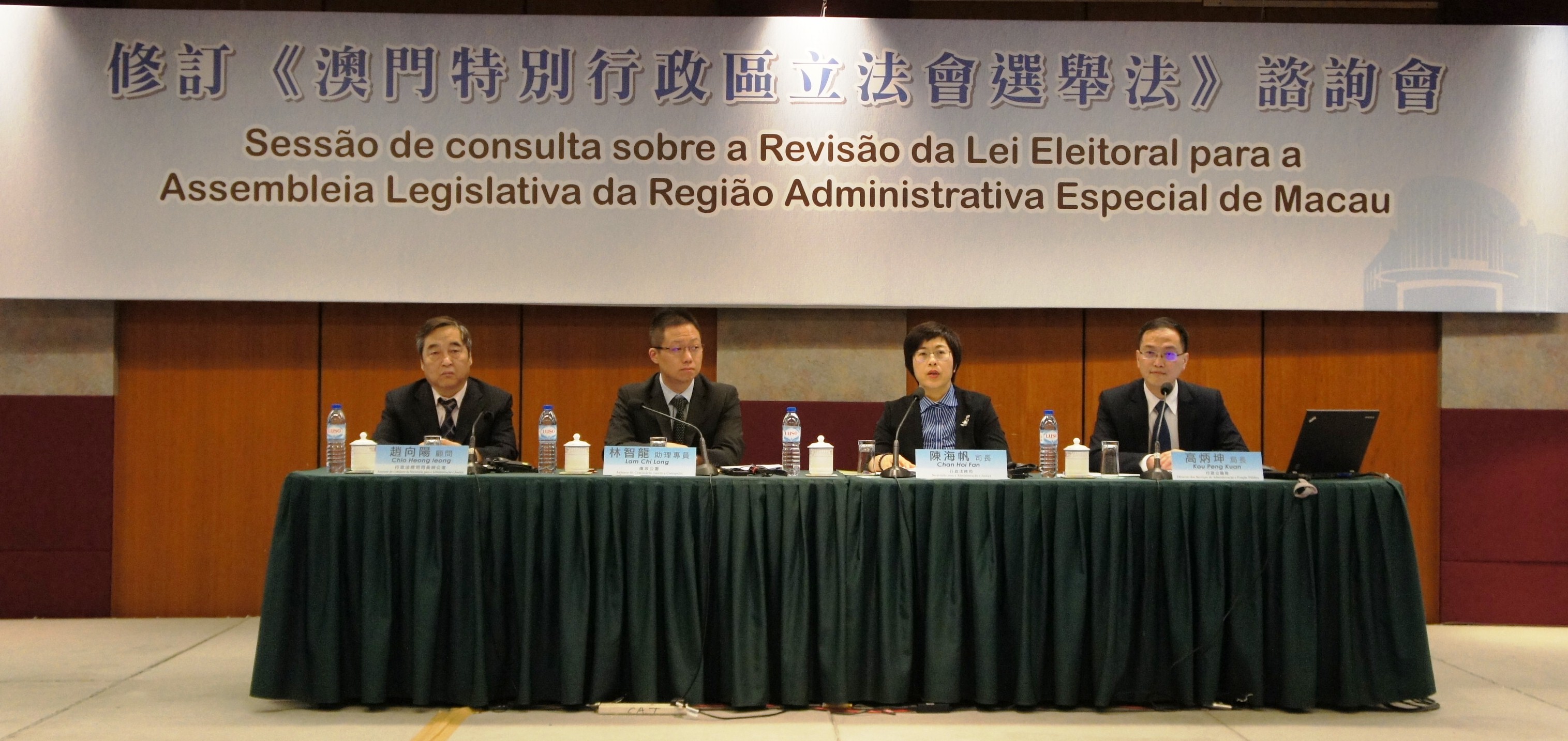 Cerca de 100 participantes provenientes das 14 comissões consultivas e 25 organizações e associações estiveram presentes nessa sessão, dos quais 12 intervieram, manifestando, dum modo geral, as suas opiniões de acordo com as formas de aperfeiçoamento sugeridas no documento de consulta, tendo em conta as vantagens para a prossecução do princípio da “imparcialidade, justiça, publicidade e integridade” das actividades eleitorais. Houve ainda opiniões que apontam para a clarificação dos componentes operacionais para a implementação, devendo nesse sentido ser realizado mais trabalho de sensibilização que constitui uma das medidas de prevenção com vista a atingir os objectivos próprios das sugestões de aperfeiçoamento.