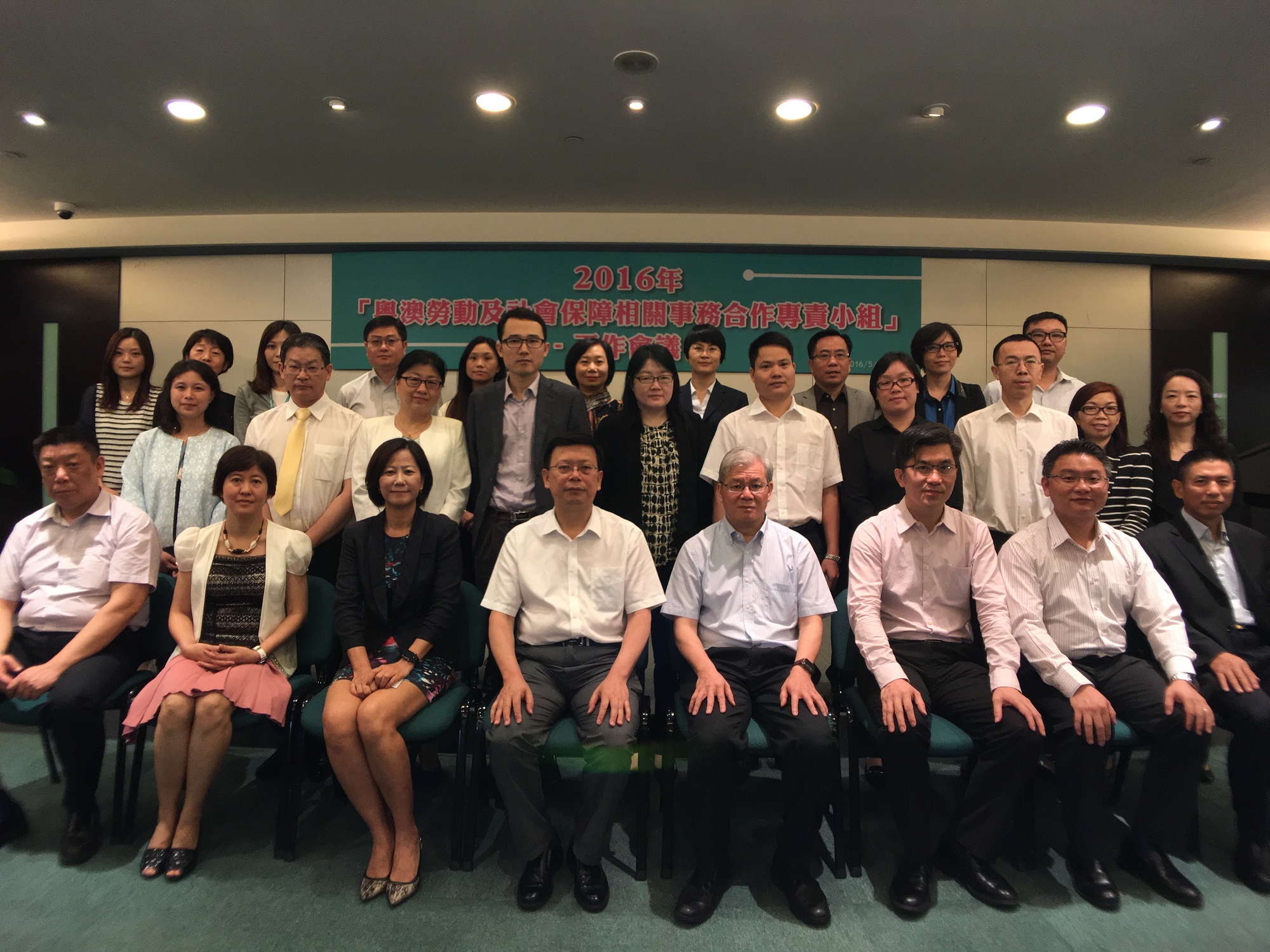 Esta reunião contou com a participação de um total de 32 pessoas, sendo 14 de Guangdong e 18 de Macau. Guangdong esteve representada pelo Chefe do Departamento de Gestão do Fundo de Segurança Social da Província de Guangdong, Que Guangchang, Chefe do Departamento de Promoção do Emprego dos Serviços de Recursos Humanos e Segurança Social da Província de Guangdong, Gao Liangfeng, Chefe do Departamento para os Assuntos da Comunidade do Gabinete para os Assuntos de Hong Kong e Macau, He Mianzhi, Chefe da Divisão do Intercâmbio e Cooperação dos Serviços de Recursos Humanos e Segurança Social da Província de Guangdong, Qiu Genlin, e Chefe do Departamento da Inspecção do Trabalho, Yu Chuntao, entre outros. Pelo lado de Macau estiveram o Director da Direcção dos Serviços para os Assuntos Laborais, Wong Chi Hong, o Presidente substituto do Fundo de Segurança Social, Chan Pou Wan, o Coordenador-adjunto do Gabinete para os Recursos Humanos, Chan Un Tong, o Chefe do Departamento de Desenvolvimento de Convenções e Exposições e das Actividades Económicas, Chan Weng Tat, e o Chefe do Departamento da Segurança Social do Fundo de Segurança Social, Ieong Iun Lai, entre outros.