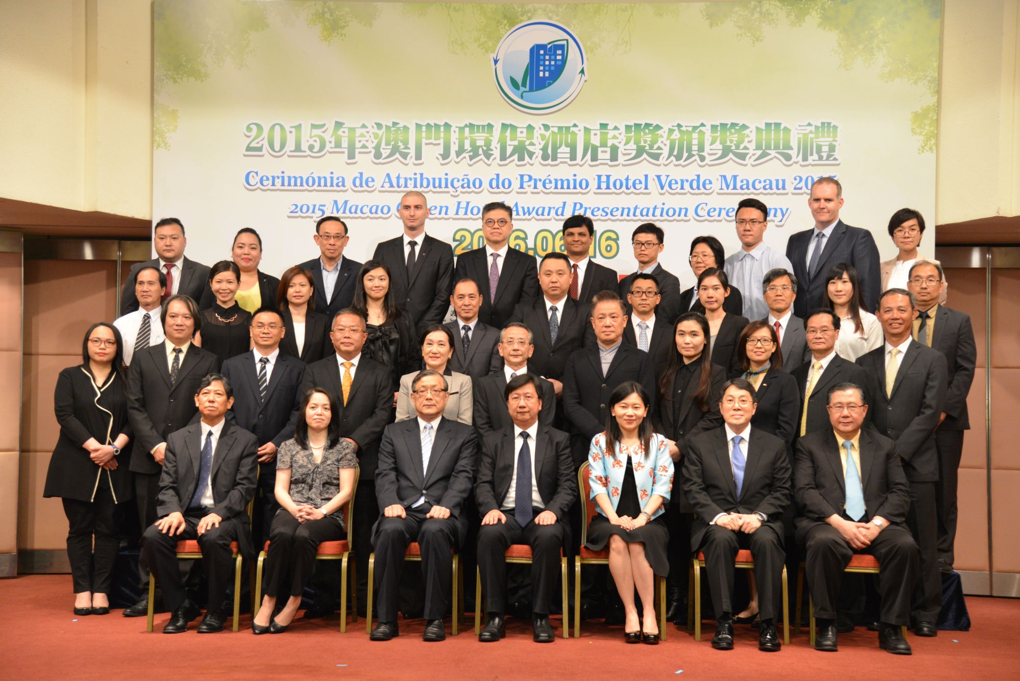 O evento realizou-se hoje (dia 16 de Junho) às 15h00, no 5.º andar do Edifício World Trade Centre, Sala Lótus, e contou com a presença do Director dos Serviços de Protecção Ambiental, Tam Vai Man, representando a entidade organizadora, da Directora dos Serviços de Turismo substituta, Tse Heng Sai, representando a entidade colaboradora, do Presidente do Conselho Administrativo da Associação dos Hoteleiros de Macau, Chan Chi Kit, do Presidente da Associação de Hotéis de Macau, Samuel Yeung Chun Yip, do Director Geral do CPTTM, Shuen Ka Hung, do Presidente do Conselho Administrativo da Associação de Empregados da Indústria Hoteleira de Macau, Lei Pou Loi e da Consultora Sénior do Conselho para a Produtividade de Hong Kong, Jessica Chan, em representação das entidades de apoio. Nesta cerimónia foi atribuído o “Prémio Hotel Verde Macau 2015” a 17 hotéis. Além destes, 7 hotéis receberam o “Prémio Fidelidade Verde”.