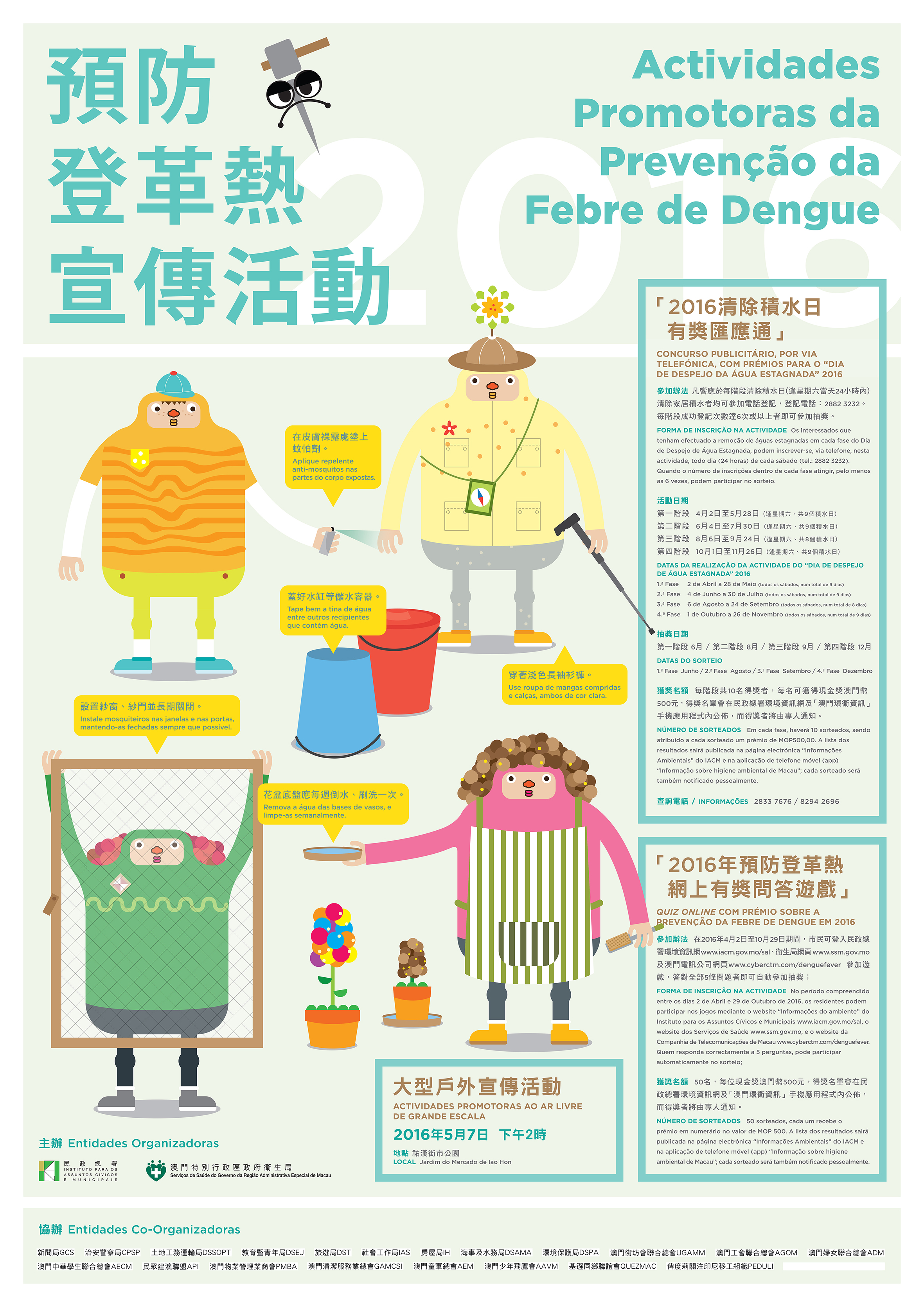 O Grupo de Trabalho de Prevenção Contra a Febre de Dengue realizou, o concurso publicitário, via telefone, para o “Dia de Despejo da Água Estagnada”, que contou com a participação activa de 1.967 pessoas. O Grupo também organizou recentemente um sorteio da primeira fase, feito pelos representantes do Instituto para os Assuntos Cívicos e Municipais (IACM) e Serviços de Saúde (SSM), que premiou 10 indivíduos.