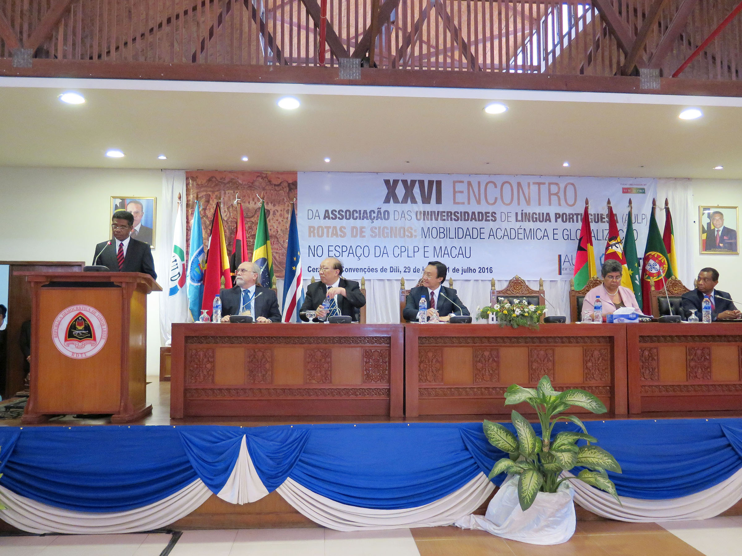 O Secretário para os Assuntos Sociais e Cultura, Doutor Alexis Tam, participou na sessão de encerramento do XXVI Encontro das Universidades de Lingua Portuguesa (AULP), onde proferiu um discurso, que decorreu no dia 1 de Julho, em Timor, na cidade de Dili.