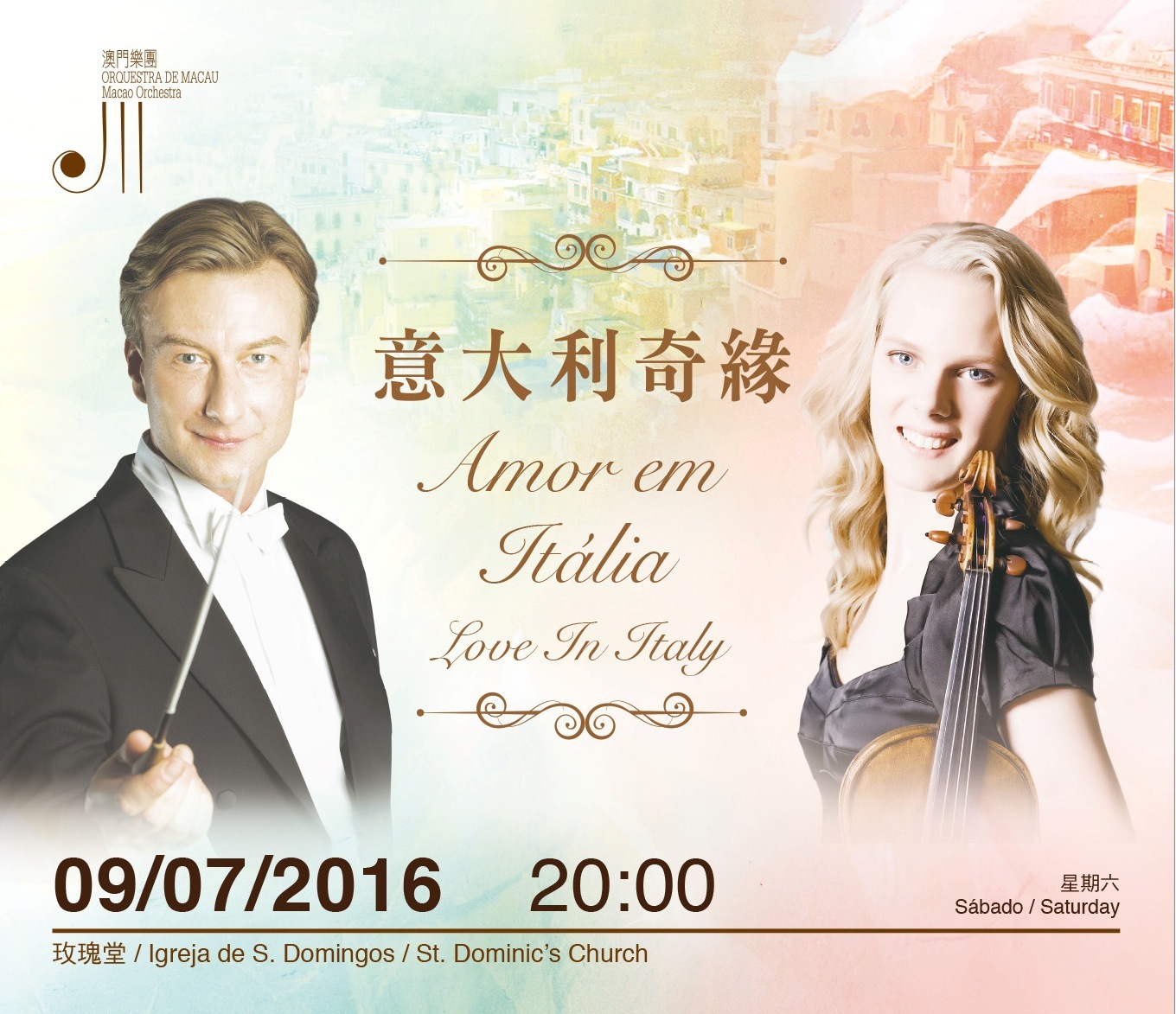 Orquestra de Macau do Instituto Cultural irá apresentar o concerto “Amor em Itália” este sábado (9 de Julho), pelas 20:00 horas, na Igreja de S. Domingos, onde o maestro austríaco Christian Armar e a violinista holandesa Simone Lamsma se juntarão à Orquestra para interpretar o Concerto para Violino de Felix Mendelssohn. O concerto é aberto ao público em geral e a entrada é livre, sendo os bilhetes distribuídos junto à entrada da Igreja de S. Domingos uma hora antes do concerto.
