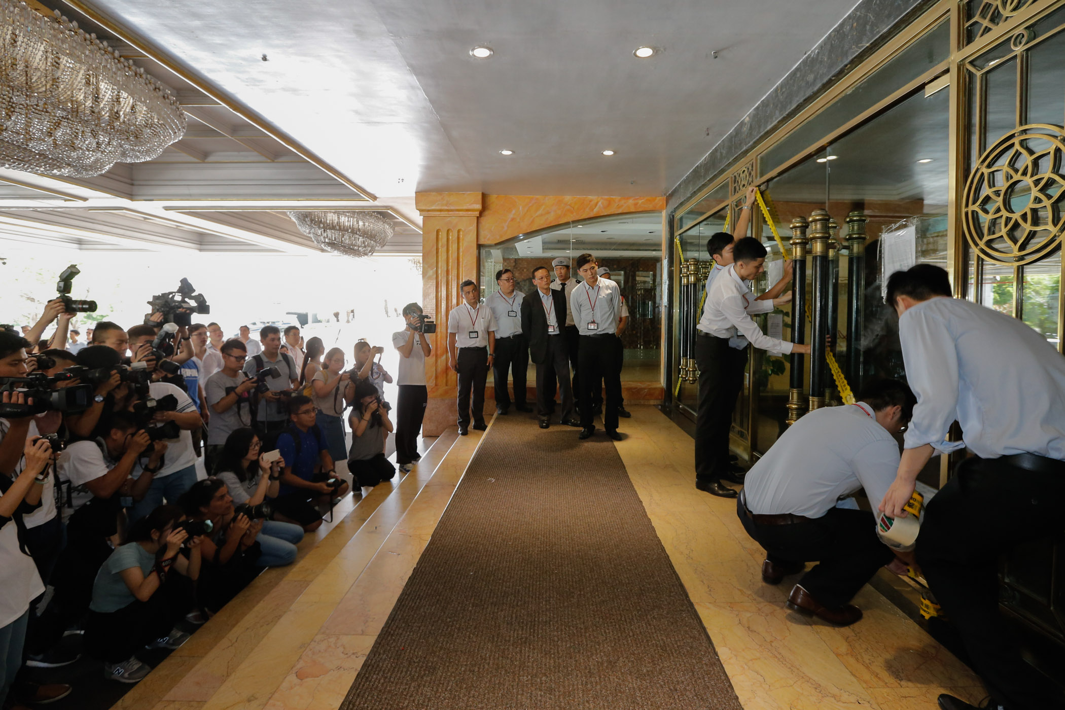 Com a colaboração do Corpo de Polícia de Segurança Pública, do Instituto para os Assuntos Cívicos e Municipais e dos Serviços de Saúde, mais de 20 inspectores da DST deslocaram-se ao Hotel Palácio Imperial Beijing antes do meio-dia para realizar os procedimentos para a medida provisória de encerramento do estabelecimento. Os inspectores verificaram todos os quartos e instalações do hotel, andar por andar, para assegurar que todas as pessoas haviam saído. Ao mesmo tempo, o tratamento dos equipamentos electromecânicos do hotel também foi devidamente acautelado, a fim de garantir a inexistência de perigo de segurança e saúde pública. A equipa de inspectores passou em seguida a realizar os procedimentos para o encerramento do hotel, com aposição de selo em todas as portas de entrada e saída do estabelecimento hoteleiro, e comunicação formal aos responsáveis do estabelecimento. Se durante o período de encerramento for detectada entrada não autorizada no estabelecimento ou detectado exercício de actividade no local, independentemente da pessoa envolvida, o autor incorre em responsabilidade criminal. Os procedimentos para o encerramento do estabelecimento terminaram por volta das 14h00. Os inspectores da DST irão fiscalizar, intermitentemente, o local encerrado para verificação da manutenção da medida provisória de encerramento.