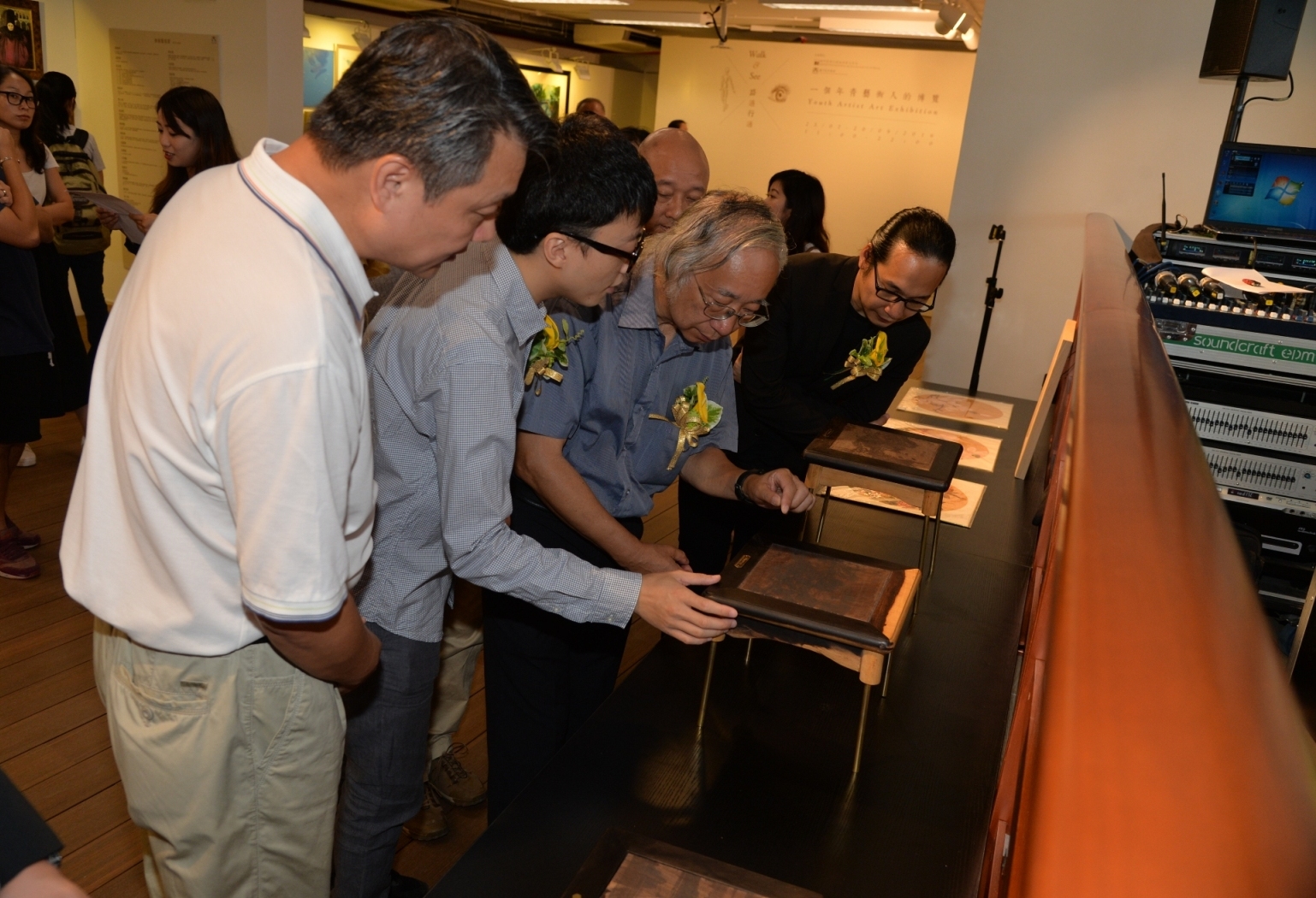 A cerimónia de inauguração de “Passando e Olhando” - Exposição de Arte dum Jovem Artista e “Memória Sussurra” -Exposição das Obras de Cai Guo Jie, co-organizadas pelo Instituto Cultural e pela Associação dos Artistas de Belas-Artes de Macau, teve lugar no dia 23 de Julho (Sábado), pelas 11:00 horas, na Galeria Junto ao Lago no Anim’Arte NAM VAN. Estiveram presentes na cerimónia o Vice-Presidente do Instituto Cultural, Chan Peng Fai; o Assistente do Director-Geral do Departamento de Cultura e Educação do Gabinete de Ligação do Governo Popular Central na R.A.E. de Macau, Shao Bin; o Vice-Presidente da Associação dos Artistas de Belas-Artes de Macau, Lok Hei; o Director da Associação dos Artistas de Belas-Artes de Macau, Sio In Leong; o Vice-Presidente da Art For All Society Macau, Nick Tai e os artistas locais, Lai Sio Kit e Coke Wong.