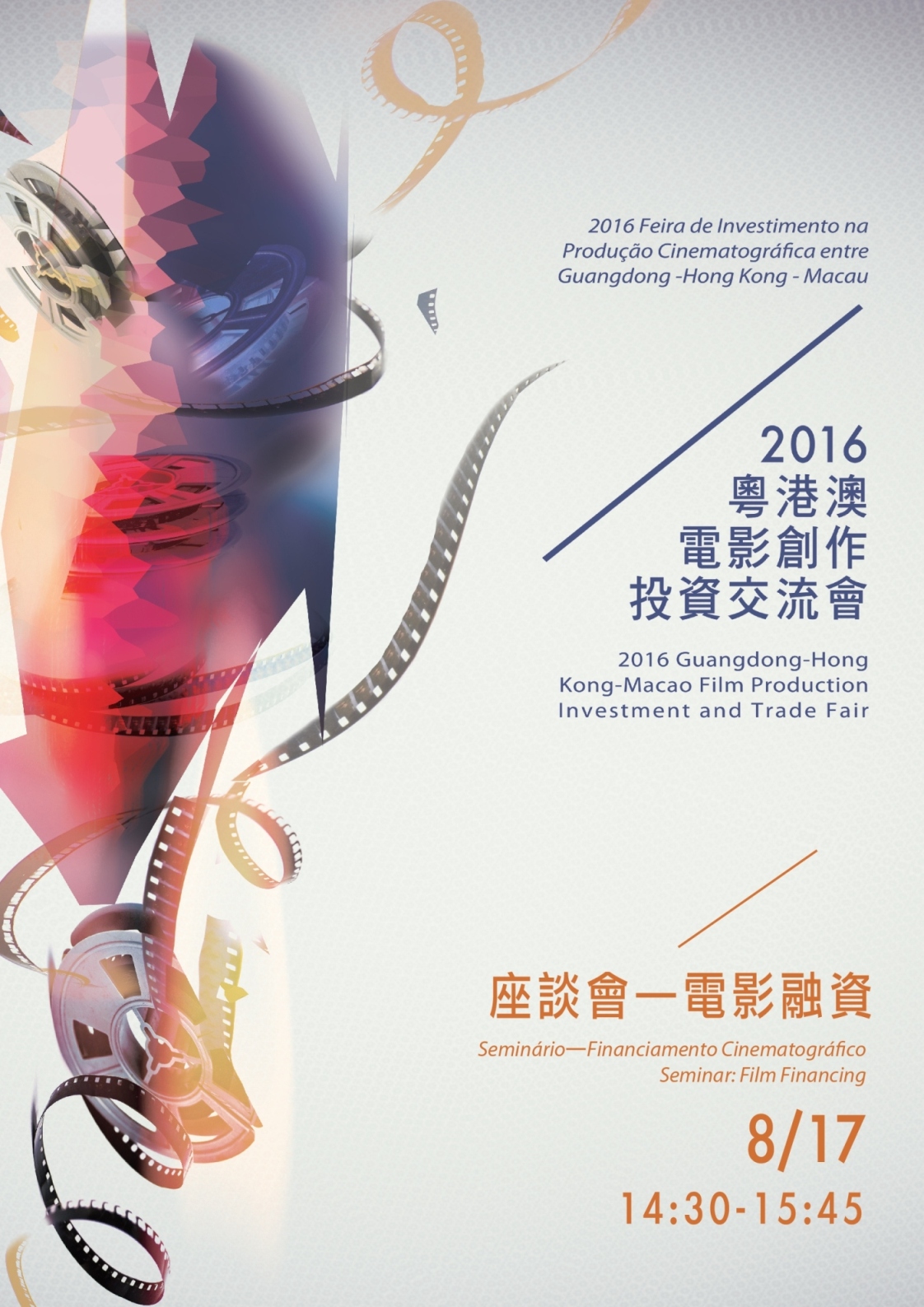 Co-organizada pelo Instituto Cultural de Macau, pelo Hong Kong Film Development Council e pela Administração de Imprensa e Publicação, Rádio, Cinema e Televisão da Província de Guangdong, a “Feira de Investimento na Produção Cinematográfica entre Guangdong-Hong Kong-Macau 2016” (“Feira de Investimento”) terá lugar no Regency Hotel em Macau nos dias 16 e 17 de Agosto. Durante a Feira, realizar-se-á o Seminário “Financiamento Cinematográfico” às 14:30 horas do dia 17 de Agosto, Quarta-feira, no salão de baile situado no 1.º andar do mesmo hotel. As inscrições online gratuitas para o Seminário encontram-se abertas a partir de hoje, sendo todos os interessados bem-vindos.
