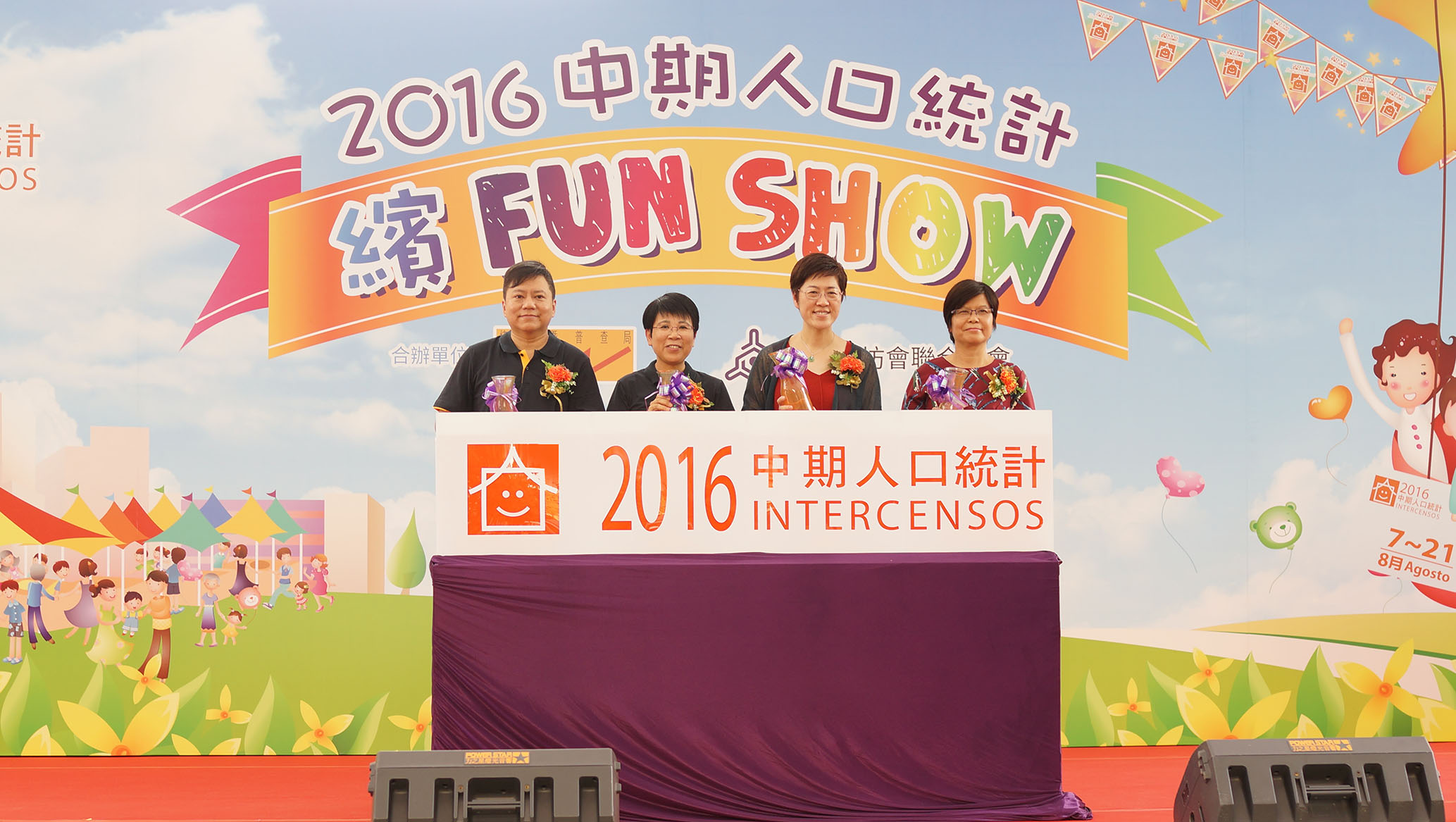 Entretanto realizou-se no dia 6 de Agosto o evento ao ar livre “Espectáculos dos Intercensos 2016”, co-organizado pela DSEC e pela União Geral das Associações dos Moradores de Macau, na zona de lazer do Edf. Lok Yeong Fa Yuen do Fai Chi Kei, tendo em vista divulgar a operação intercensitária. As actividades de sensibilização incluíram uma peça de teatro, espectáculos de magia, música e dança, jogos em tendinhas e sorteios. Esta oportunidade estimula o convívio com os cidadãos, assim como o seu interesse em aprofundar conhecimentos sobre os Intercensos 2016. As actividades contaram com a participação de cerca de 1.000 pessoas.