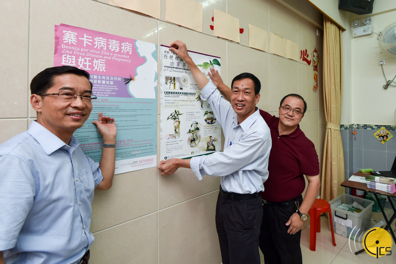 Os membros do Grupo de Trabalho também explicaram a possibilidade de transmissão de Dengue e do vírus Zika através de picadas de mosquitos Aedes Albopictuso assim como acentuaram a facilidade de proliferação destes insectos em climas húmidos e chuvosos. Este ano, a situação epidémica de Dengue nas regiões do Sudeste Asiático tem sido bastante grave e, até ao momento, em Macau, já foram registados 8 casos importados do Sudeste Asiático. Por outro lado também foi recentemente registado um aumento súbito de 304 infectados por vírus Zika em Singapura. Nos países do Sudeste Asiático têm ocorrido, casos esporádicos mas a Organização Mundial de Saúde anunciou que este surto constituiu uma situação de “emergência de saúde pública de importância internacional”. Portanto, é crucial reforçar o trabalho de prevenção e controlo do vírus Zika e da febre de dengue.