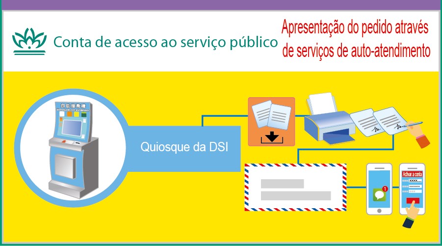 - Imprimidos e devidamente assinados o formulário de pedido e a convenção, estes devem ser colocados num envelope e, no rosto deste, escrever-se “ Para Direcção dos Serviços de Administração e Função Pública– Pedido de conta de acesso ao serviço público”, e enviados ao SAFP com a isenção de taxa postal ou entregues directamente no SAFP, no Centro de Serviços da RAEM (Zona de assuntos relativos à Administração e Função Pública) ou nos Centros de Prestação de Serviço ao Público da Zona Central e das Ilhas.