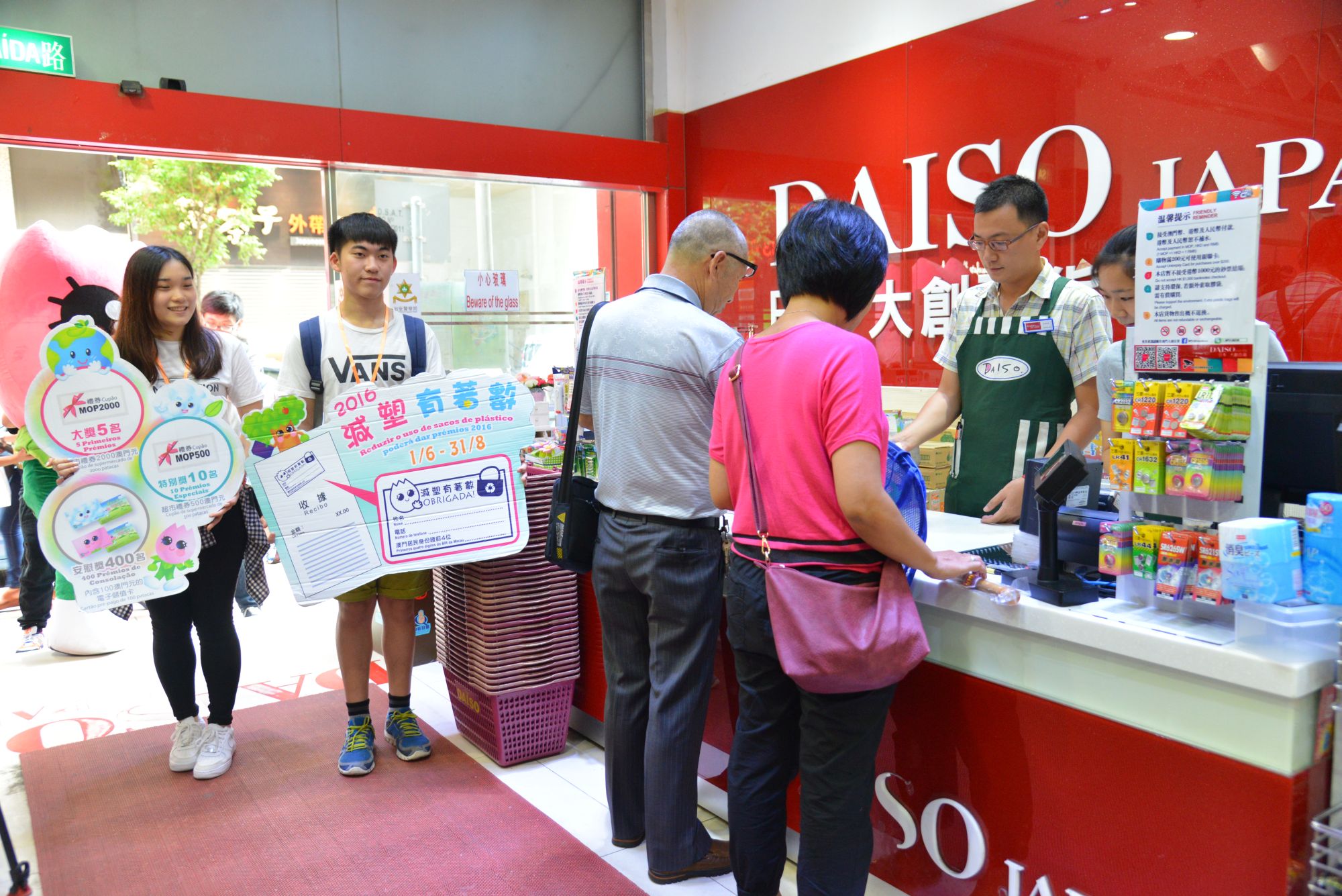 No intuito de continuar a incentivar os cidadãos para adoptarem o comportamento de reduzir o uso de sacos de plástico, quanto fazem compras no seu dia-a-dia, a DSPA continuou a organizar a actividade “Reduzir o uso de sacos de plástico poderá dar prémios”, entre 1 de Junho e 31 de Agosto do ano corrente, em colaboração com o Conselho de Consumidores e diversas associações, tendo esta actividade contado ainda com o apoio de 35 estabelecimentos comerciais (no total de mais de 210 estabelecimentos incluindo as sucursais). A reacção dos cidadãos foi muito activa e positiva, tendo sido registado mais de 150 mil participantes neste programa de actividade, desde a primeira edição em 2013, ou seja foi possível reduzir, pelo menos, o uso de mais de 150 mil sacos de plástico.