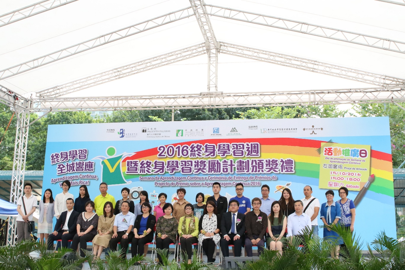 Para despertar a atenção da sociedade relativamente à aprendizagem contínua e aumentar o interesse dos cidadãos pela mesma, a Direcção dos Serviços de Educação e Juventude (DSEJ) organizou, entre 15 e 22 de Outubro, em conjunto com o Instituto Cultural, o Instituto para os Assuntos Cívicos e Municipais, a Associação de Educação de Adultos de Macau e a Associação de Educação Permanente de Macau, em colaboração com o Instituto da Organização da Aprendizagem de Macau e a Associação de Comunidade de Aprendizagem e de Promoção da Leitura de Macau, a actividade “Semana de Aprendizagem Contínua 2016”, realizando ainda a cerimónia de entrega de prémios, no dia 15 de Outubro, com vista a celebrar os cidadãos que obtiveram um aproveitamento excelente na aprendizagem contínua em regime pós-laboral ou após as aulas. Nesta edição 279 pessoas foram premiadas.
