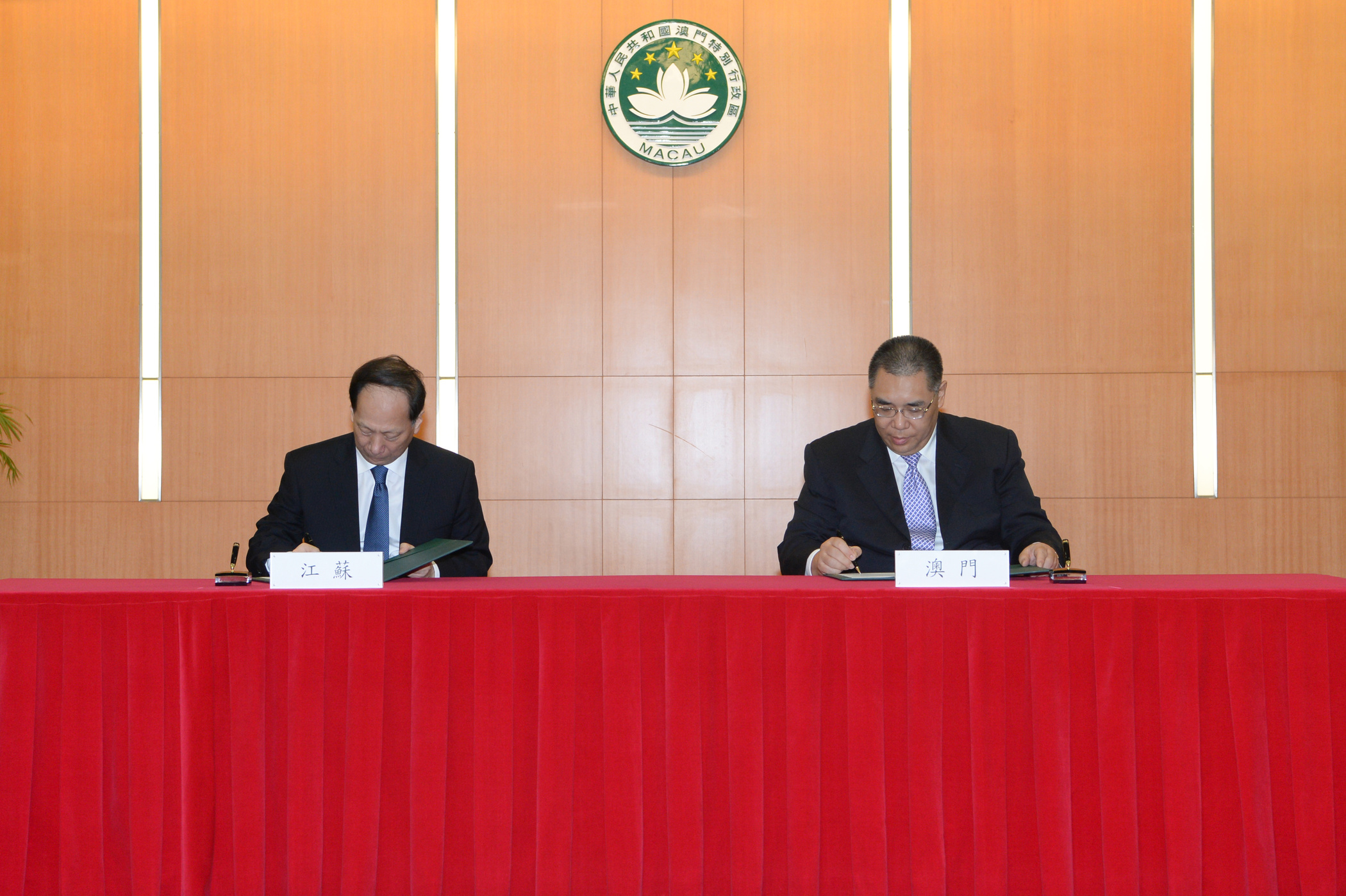 O «Memorando sobre a Construção Conjunta do Parque de Cooperação Jiangsu-Macau entre o governo popular da província de Jiangsu e o governo da Região Administrativa Especial de Macau (RAEM)» foi assinado pelo Chefe do Executivo, Chui Sai On, e o governador daquela província, Shi Taifeng, durante a sua visita a Macau.