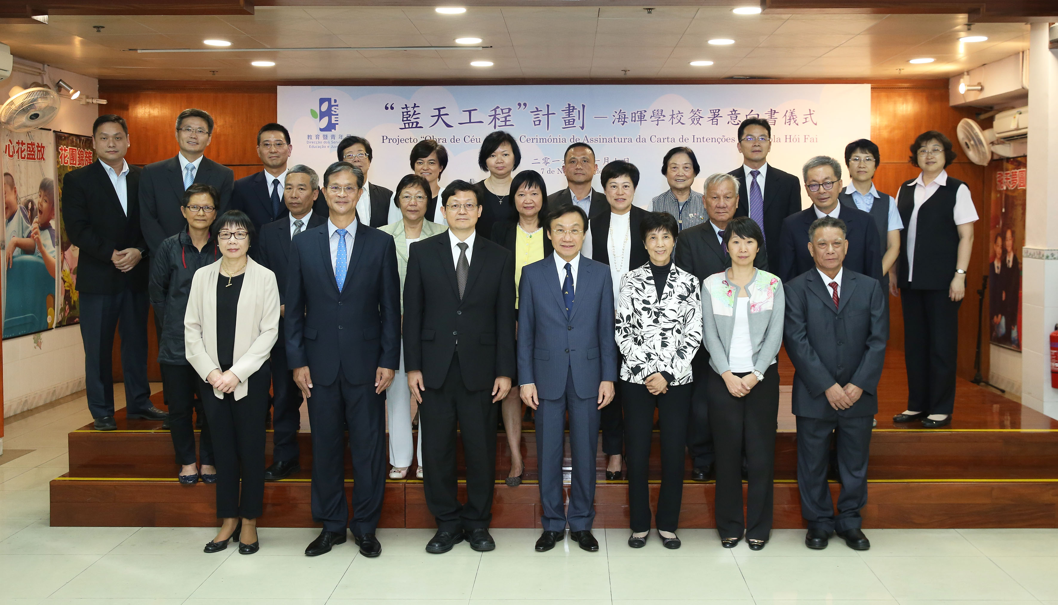 A Cerimónia de Assinatura contou ainda com a presença das seguintes personalidades: assessor do Gabinete do Secretário para os Assuntos Sociais e Cultura, Wai Cheng Iong, subdirectora da DSEJ, Kuok Sio Lai e subdirectora da Direcção dos Serviços de Finanças, Chong Seng Sam. Estiveram também presentes a presidente da Federação das Associações dos Operários de Macau, Ho Sut Heng e os vice-presidentes da mesma, Kwan Tsui Hang e Fong Ka Fai, a presidente da Associação de Educação de Macau, Ho Sio Kam, a directora da direcção da mesma Associação, Chan Hong, o ex-presidente da Associação de Auxílio Mútuo de Pescadores de Macau, Kuai Pui e a vice-presidente Po Siu Ling; os directores de diversas escolas, a saber: Tai Chan Lam, Vong Kuoc Ieng, Leong Weng Kam, Kong Chio Iok e Loi Kat Sat, os chefes dos departamentos da DSEJ e os representantes da Associação de Auxílio Mútuo de Pescadores de Macau e da Escola Hói Fai, totalizando mais de 60 convidados.