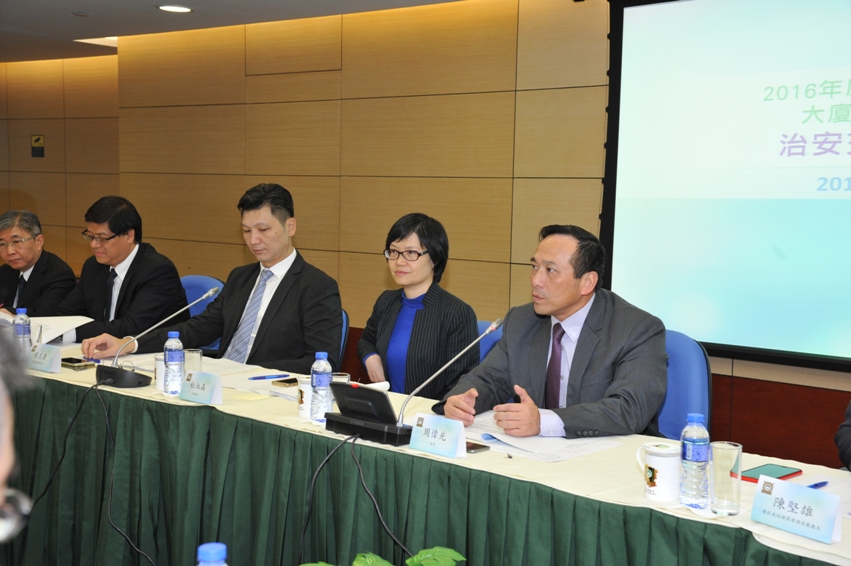 Todos os representantes que estiveram na reunião reconheceram os nossos esforços na prevenção e combate à criminalidade e concordaram que uma boa cooperação entre polícia e população é favorável para a manutenção da ordem pública. Além disso, foram ainda trocadas opiniões sobre o aprofundamento da interacção e cooperação entre polícia e população, aumento de consciência da população na prevenção criminal, bem como a resolução em conjunto de problemas relativas à segurança da comunidade. Os representantes das associações estão de acordo com o conceito “polícia e população, uma só família” defendido pela PJ, com o objectivo de que todos os sectores se juntem para ajudar os habitantes, nomeadamente para ajudar os que moram em edifícios baixos a melhorarem a segurança contra o furto, colmatar as falhas de segurança e prevenir os demais crimes que podem ocorrer em edifícios.