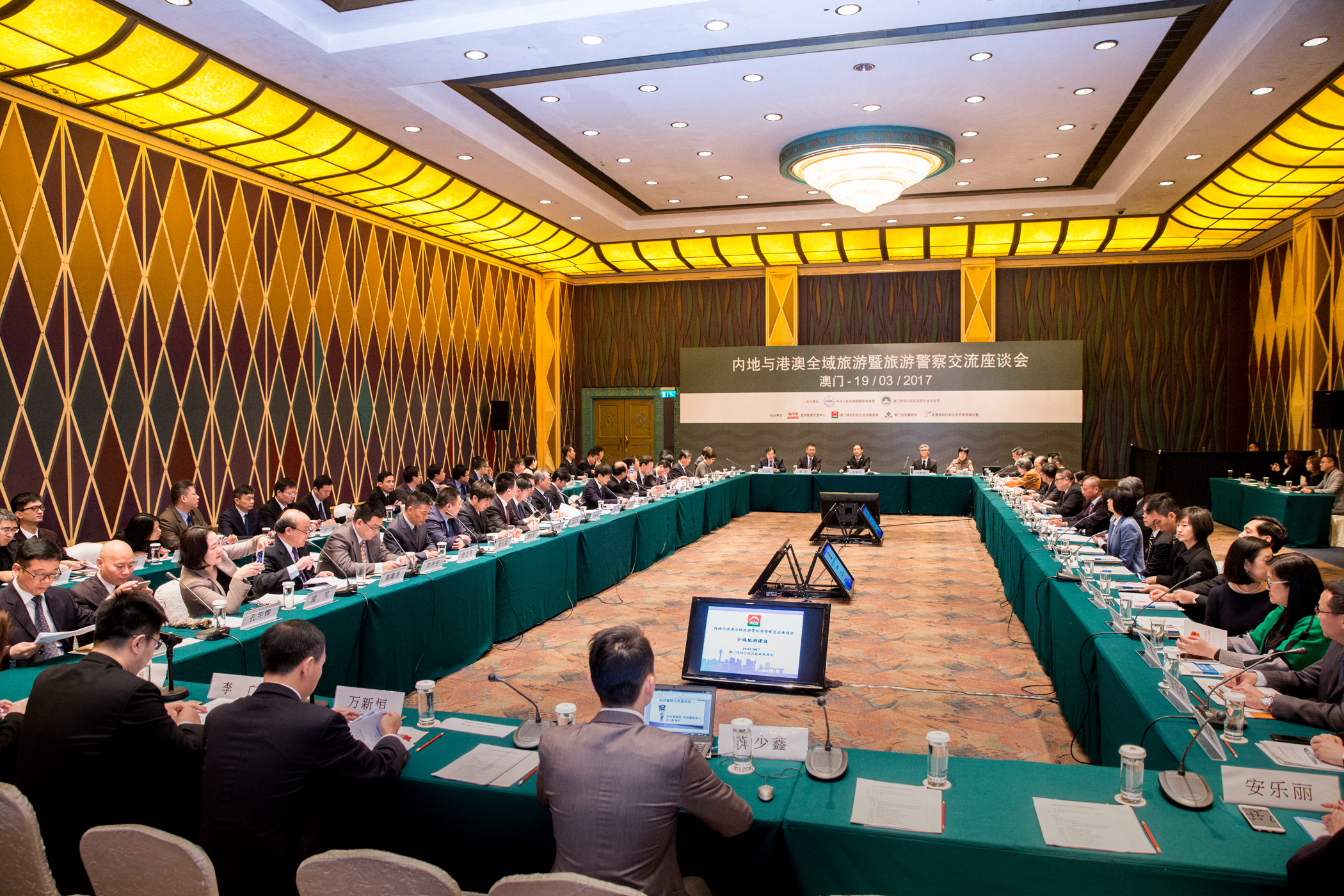 A Administração Nacional do Turismo da China (China National Tourism Administration – CNTA) e a Secretaria para os Assuntos Sociais e Cultura realizaram hoje (dia 19) em Macau, pela primeira vez, um Seminário de Intercâmbio entre o Interior da China, Hong Kong e Macau sobre Turismo Integrado e Polícia Turística. Representantes de serviços de turismo e corpos de polícia oriundos do Interior da China, de Hong Kong e Macau fizeram intercâmbio sobre o desenvolvimento e a prática do turismo integrado e polícia turística, e realizaram uma visita de familiarização in loco sobre o turismo e serviços da polícia turística de Macau. O director da CNTA, Li Jinzao, e o chefe do Gabinete do Secretário para os Assuntos Sociais e Cultura, Ip Peng Kin, estiveram presentes e proferiram discursos no seminário. A ocasião contou também com a presença do subdirector do Gabinete de Ligação do Governo Popular Central na Região Administrativa Especial de Macau, Yao Jian.