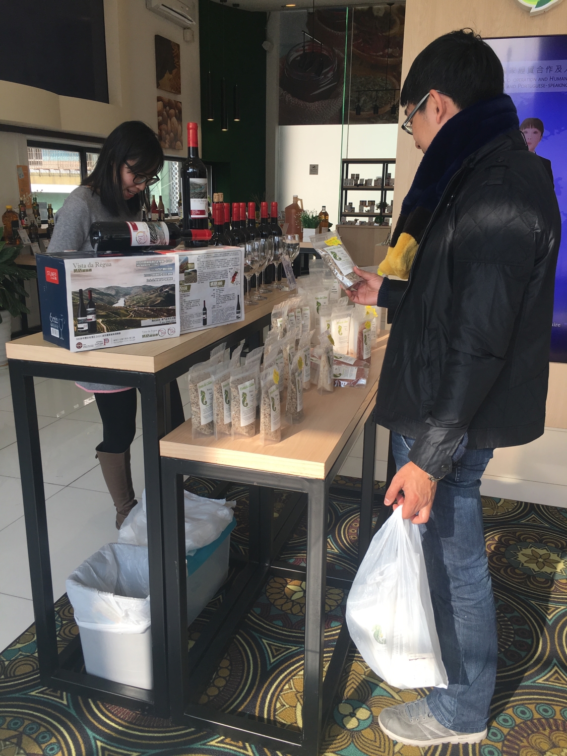 O Sr. Leo Ho acrescentou que a empresa, além da venda dos produtos a vários restaurantes e supermercados locais em Macau, realiza a comercialização por grosso aos diversos países e regiões. Com a implementação da política “Uma Faixa, Uma Rota”e as vantagens de Macau como a plataforma de cooperação entre a China e os países de língua portuguesa, existem oportunidades ilimitadas de negócio ligadas à venda dos produtos locais aos países estrangeiros. Ele espera expandir o mercado doméstico e estrangeiro através da actual plataforma de exposição e comercialização. Além do mercado estrangeiro, o Sr. Jeffrey Vongestá optimista com o desenvolvimento potencial do Interior da China. Ele referiu que sendo Macau o centro de distribuição dos produtos alimentares dos países lusófonos, possui uma imagem e um charme característicos. Ele espera realizar as bolsas de contacto com as empresas do Interior da China para acelerar a promoção dos alimentos provenientes dos países lusófonos no Interior da China, através das actividades promocionais organizadas pelo Governo e do apoio prestado no âmbito das políticas relacionadas.