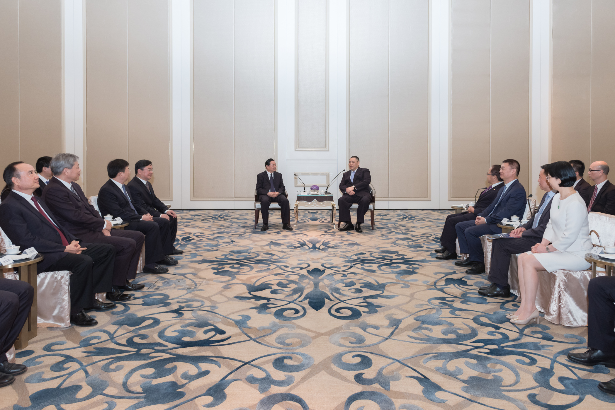 Na ocasião, ambas as partes trocaram opiniões sobre o desenvolvimento em Macau de empresas estatais chinesas, o apoio para promoção da diversificação adequada da economia de Macau e a construção de uma plataforma entre a China e os Países de Língua Portuguesa.