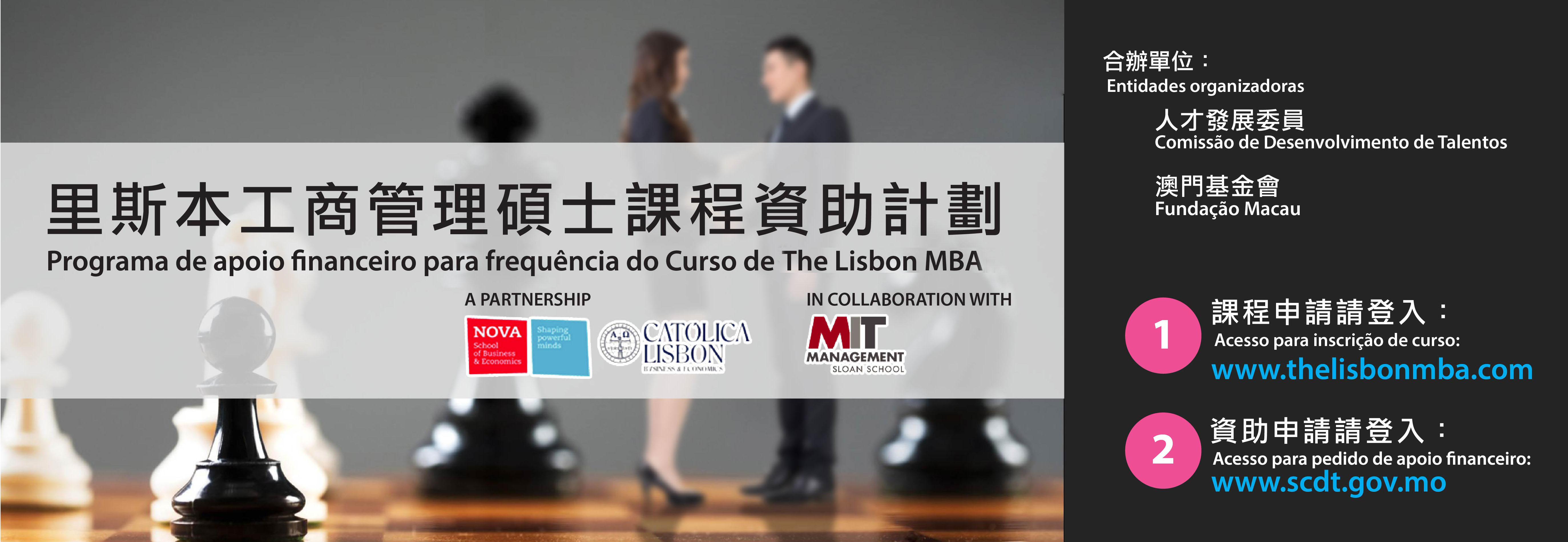A Comissão de Desenvolvimento de Talentos lançou três planos de formação de quadros qualificados, incluindo o “Programa de apoio financeiro para frequência de cursos de mestrado na Universidade de Coimbra, em Portugal” (adiante designado por Plano de Coimbra); “Programa de apoio financeiro para frequência do Curso ‘The Lisbon MBA’” (adiante designado por Plano de Lisboa) e o “Programa de apoio financeiro para frequência do Curso de EMBA da HKUST” (adiante designado por Plano de HKUST), cujas inscrições serão iniciadas a partir de 1 de Junho e terminam, para o Plano de Coimbra, em 15 de Junho, e para os restantes programas em 30 de Junho.