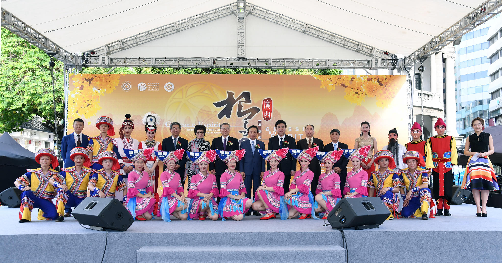 Apresentado pelo Ministério da Cultura da República Popular da China e pela Secretaria para os Assuntos Sociais e Cultura do Governo da R.A.E. de Macau e organizado pelo Instituto Cultural do Governo da R.A.E. de Macau e pelo Departamento de Cultura da Região Autónoma Zhuang de Guangxi, o evento “Génese e Espírito - Mostra de Património Cultural Imaterial de Guangxi” foi inaugurado inauguroucom uma cerimónia oficial no Largo do Senado, no dia 8 de Junho de 2017, pelas 17h. Este evento destina-se a celebrar o "Dia do Património Cultural e Natural da China", de 2017, e a promover a cooperação e o intercâmbio entre o Interior da China e Macau ao nível da salvaguarda do património cultural imaterial, bem como enriquecer o conhecimento dos residentes de Macau sobre a diversidade do património cultural imaterial da nação Chinesa. Estiveram presentes na cerimónia o Secretário para os Assuntos Sociais e Cultura do Governo da RAEM, Alexis, Tam Chon Weng; o Vice-Ministro da Cultura da República Popular da China, Xiang Zhaolun; o Subdirector do Gabinete de Ligação do Governo Popular Central na R.A.E. de Macau, Xue Xiaofeng; a Vice-Comissária do Ministério dos Negócios Estrangeiros da R. P. da China na R.A.E. de Macau, Wang Dong; o Vice-Director do Gabinete para os Assuntos Culturais com as Regiões de Hong Kong, Macau e Taiwan do Ministério da Cultura da RPC, Li Jiangang; o Presidente do Instituto Cultural do Governo da R.A.E. de Macau, Leung Hio Ming; e o Sub-chefe do Departamento de Cultura da Região Autónoma Zhuang de Guangxi, Zhu Chuangwei.