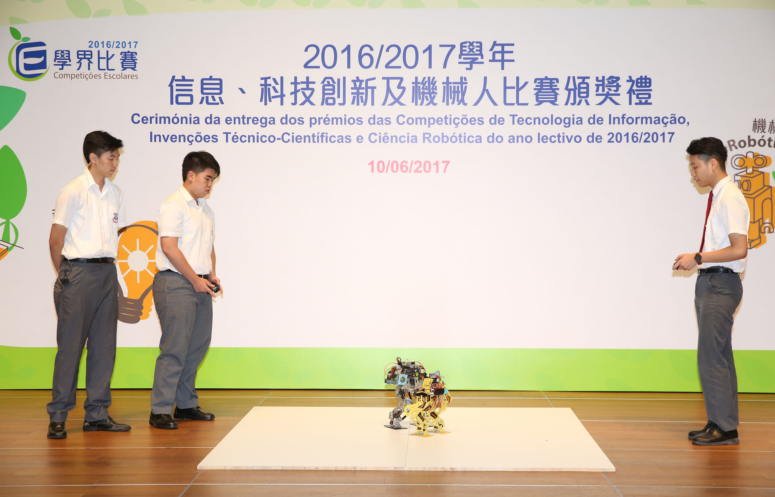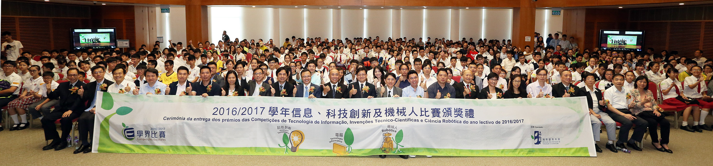 A “Cerimónia da entrega dos prémios das Competições de Tecnologia da Informação, Invenções Técnico-Científicas e Ciência Robótica do ano lectivo de 2016/2017”, organizada pela DSEJ, realizou-se, no dia 10 de Junho, no Centro de Convenções do Centro de Ciência de Macau. A DSEJ espera, através da “15.ª Edição Nacional da Invenção da Tecnologia Informática e Prática nos Ensinos Primário e Secundário – Selecção de Macau”, da “Selecção dos Trabalhos de Invenção Tecnológica dos Jovens de Macau 2017”, da “Competição para a Selecção de Jovens de Macau para a Actividade de Ciência Robótica Integrada 2017” e da “Competição de Ciências e Engenharia de Macau 2016”, seleccionar equipas excelentes para, em nome de Macau, participarem no “32.º Concurso Nacional de Invenções Técnico-Científicas para Jovens da China” e no “17.º Concurso de Pequenos Cientistas do Futuro”, organizando, ao mesmo tempo, equipas escolares para participarem em concursos internacionais, nacionais e regionais, pretendendo, através de intercâmbios com os alunos de diferentes países e regiões, aumentar os seus horizontes internacionais.