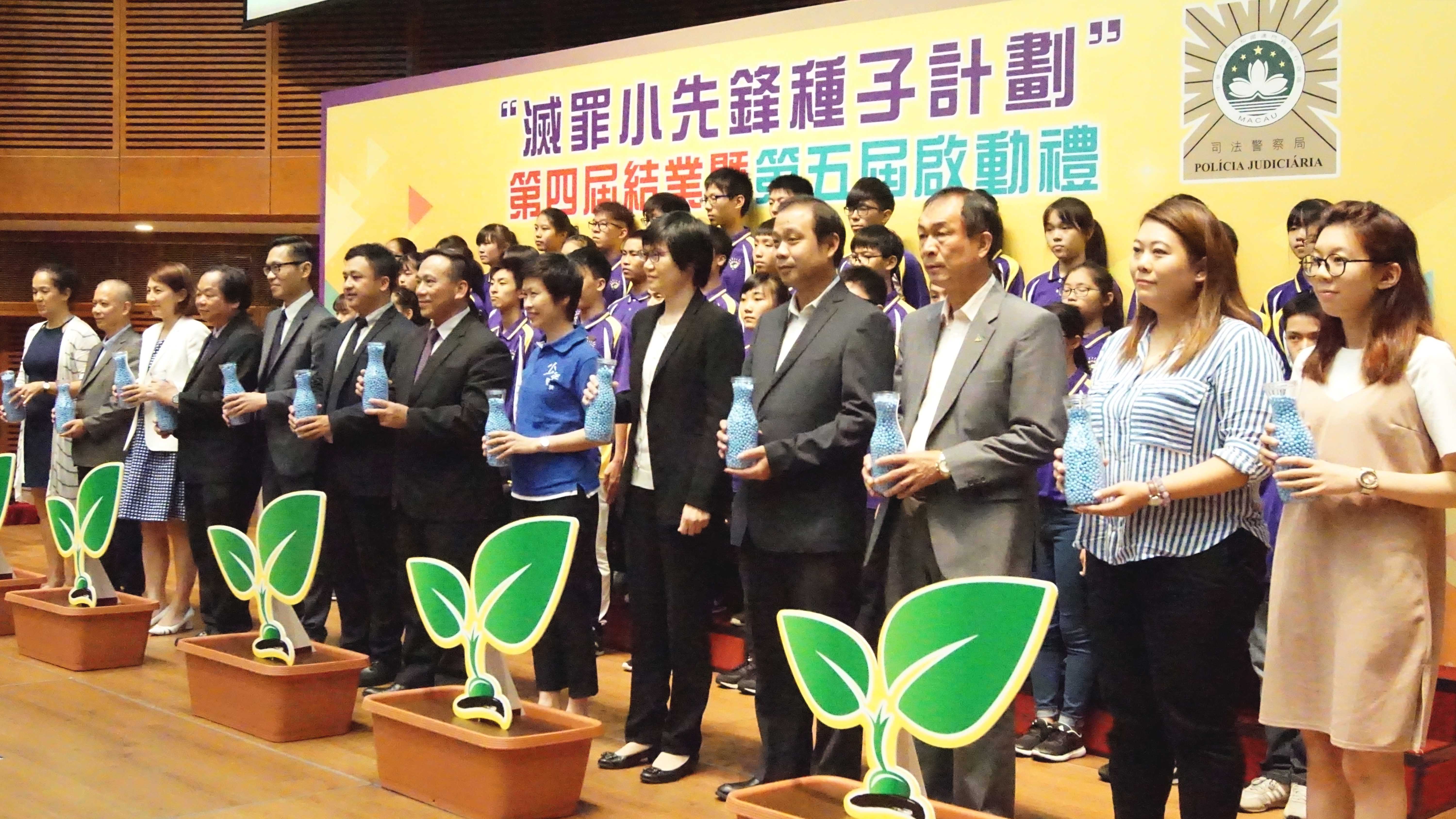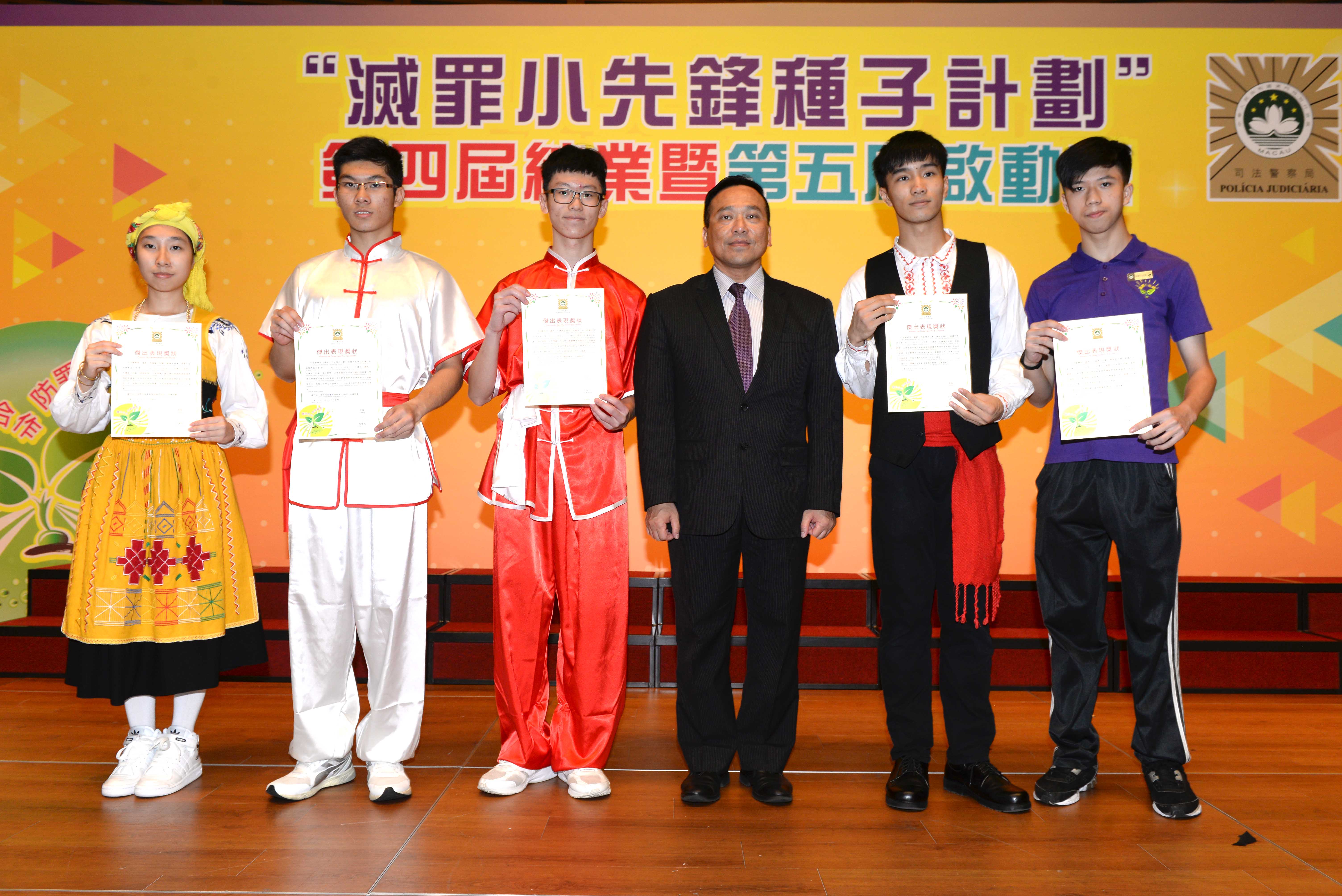 Depois de um ano de formação e prática, foram atribuídos certificados aos 62 participantes que tiveram aproveitamento na 4ª edição do “Projecto para guia juvenil para combater o crime”. A par disso, a PJ atribui louvores a 20 participantes que tiveram um desempenho relevante durante o processo de aprendizagem, os quais serão nomeados chefes de equipa para colaborarem com esta instituição na 5ª edição do projecto. Para além disso, ao longo do ano, houve 7 chefes de equipa do “Guia juvenil para combater o crime” da 3ª edição e 5 participantes da 2ª edição que colaboraram nas acções de formação da 4ª edição e ainda participaram nas actividades de sensibilização de combate à criminalidade, realizadas pela PJ. Este empenho foi merecedor de elogio, pelo que a PJ lhes atribuiu prémios de excelência na liderança e prémios de desempenho, para servir de estímulo.