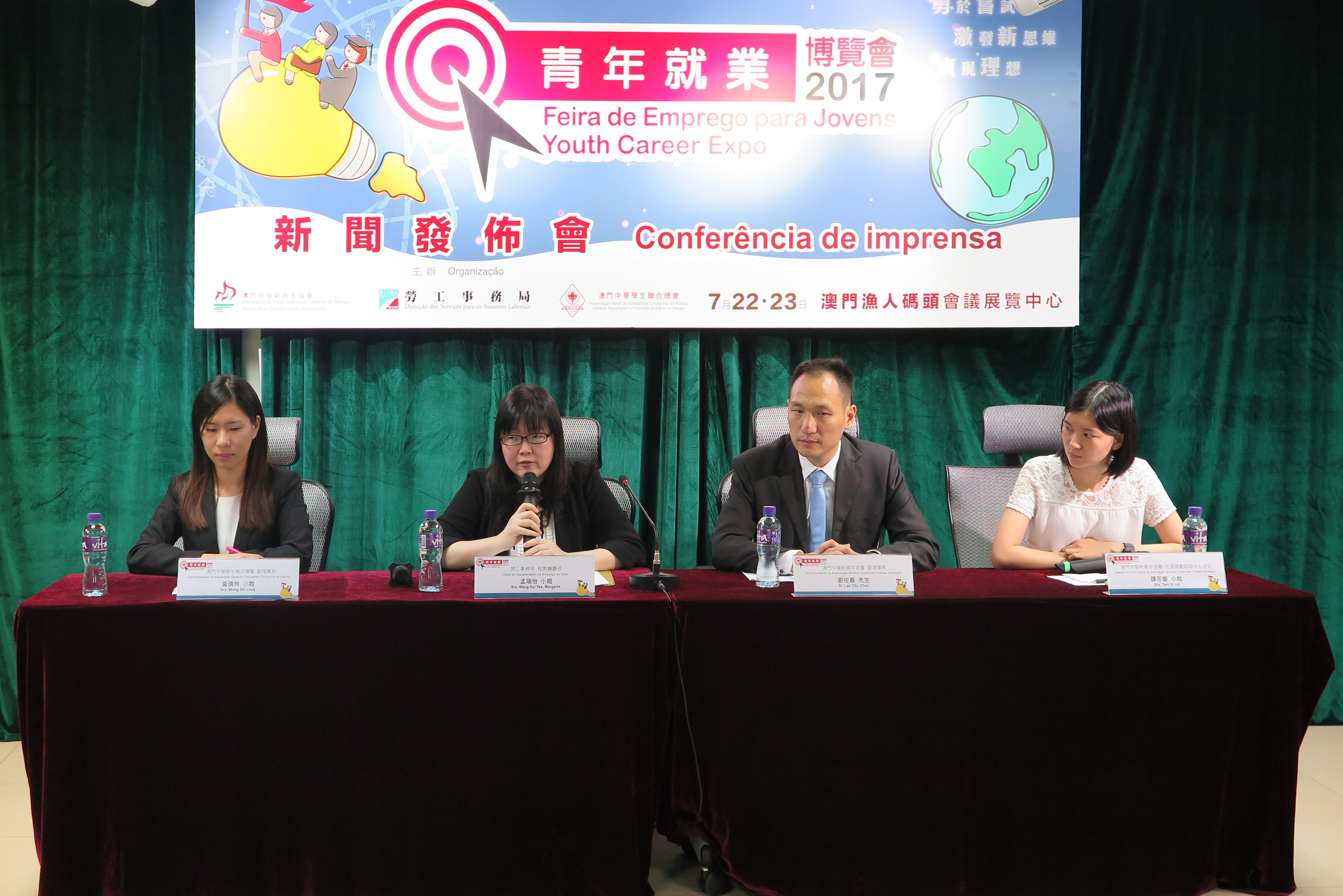 Para mais informações, consulte a página electrónica da “Exposição de empregos para jovens” no Facebook e as seguintes: www.dsal.gov.mo, www.my.org.mo e www.aecm.org.mo, ou telefone para o nº 28842719.