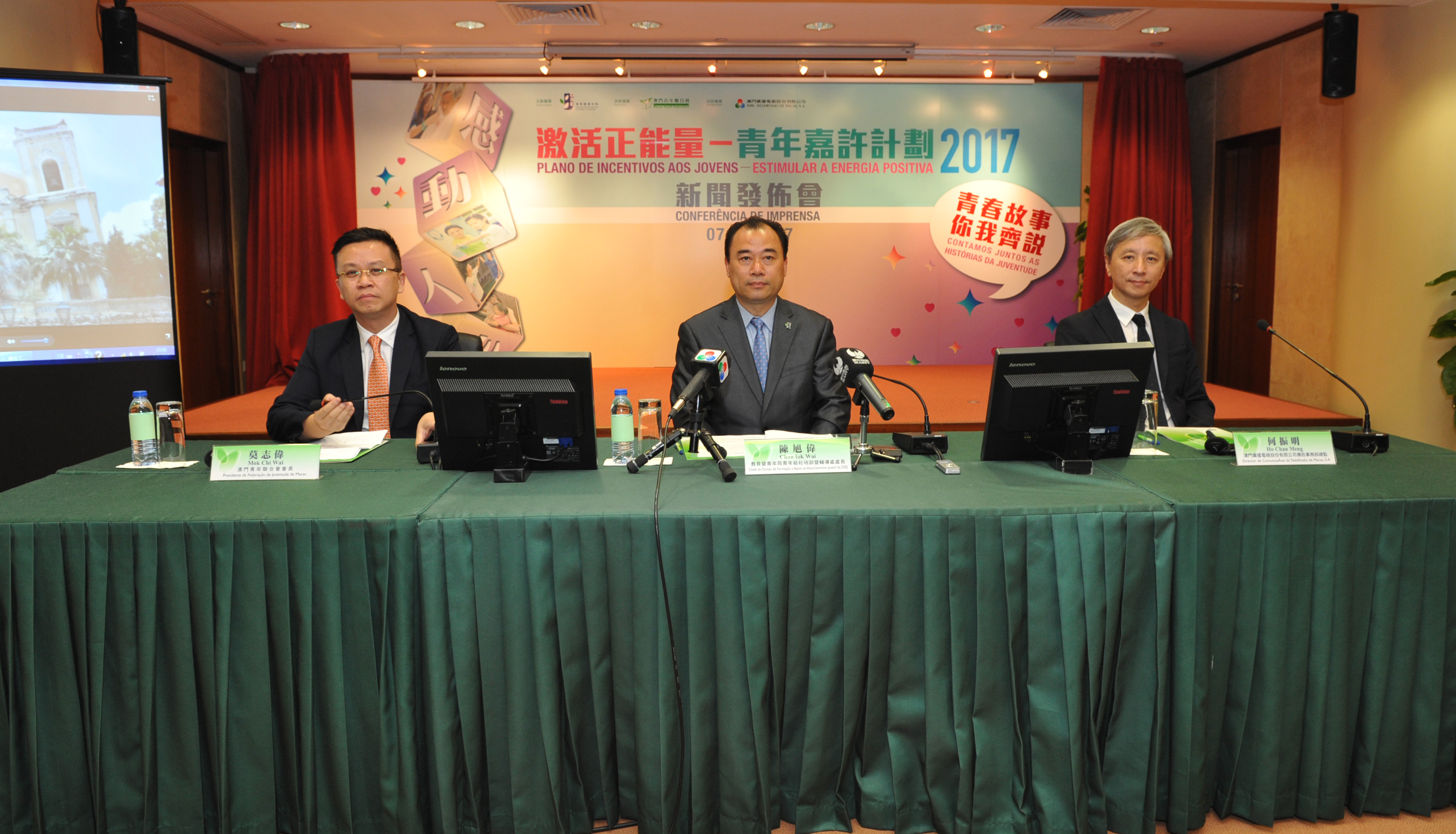 O Chefe da Divisão de Formação e Apoio ao Associativismo Juvenil da DSEJ, Chan Iok Wai, o Presidente da Federação de Juventude de Macau, Mok Chi Wai e o Director de Comunicações da TDM, Ho Chan Meng, estiveram presentes na conferência de imprensa, que teve lugar no dia 7 de Agosto, pelas 15:00, no edifício-sede da DSEJ, para apresentarem os detalhes desta actividade. O chefe de divisão, Chan Iok Wai afirmou que, para se articular com as linhas da acção governativa dos assuntos juvenis de 2017, no que se refere atender às necessidades sociais, organiza-se de novo este ano o Plano de Incentivos aos Jovens – Estimular a Energia Positiva. Trata-se esta, da terceira vez que se realiza esta iniciativa após as duas realizações anteriores, em 2012 e 2014. De acordo com o conteúdo das linhas da acção governativa, neste ano será introduzido um novo critério de “entusiasmo na preocupação com a sociedade” na apreciação; além disso, para uma melhor divulgação sobre o plano, foi introduzido um slogan - “Contamos juntos as histórias da juventude” para o efeito. Em seguida, o presidente Mok Chi Wai apresentou os detalhes e observações sobre esta actividade, apelou ainda aos jovens para participarem, entusiasticamente, neste plano de incentivo, aos cidadãos para descobrirem de forma dinâmica as histórias emocionais dos seus amigos, estimularem e recomendarem a participação dos outros, sendo bem-vindo o apoio positivo dos cidadãos na selecção das histórias.