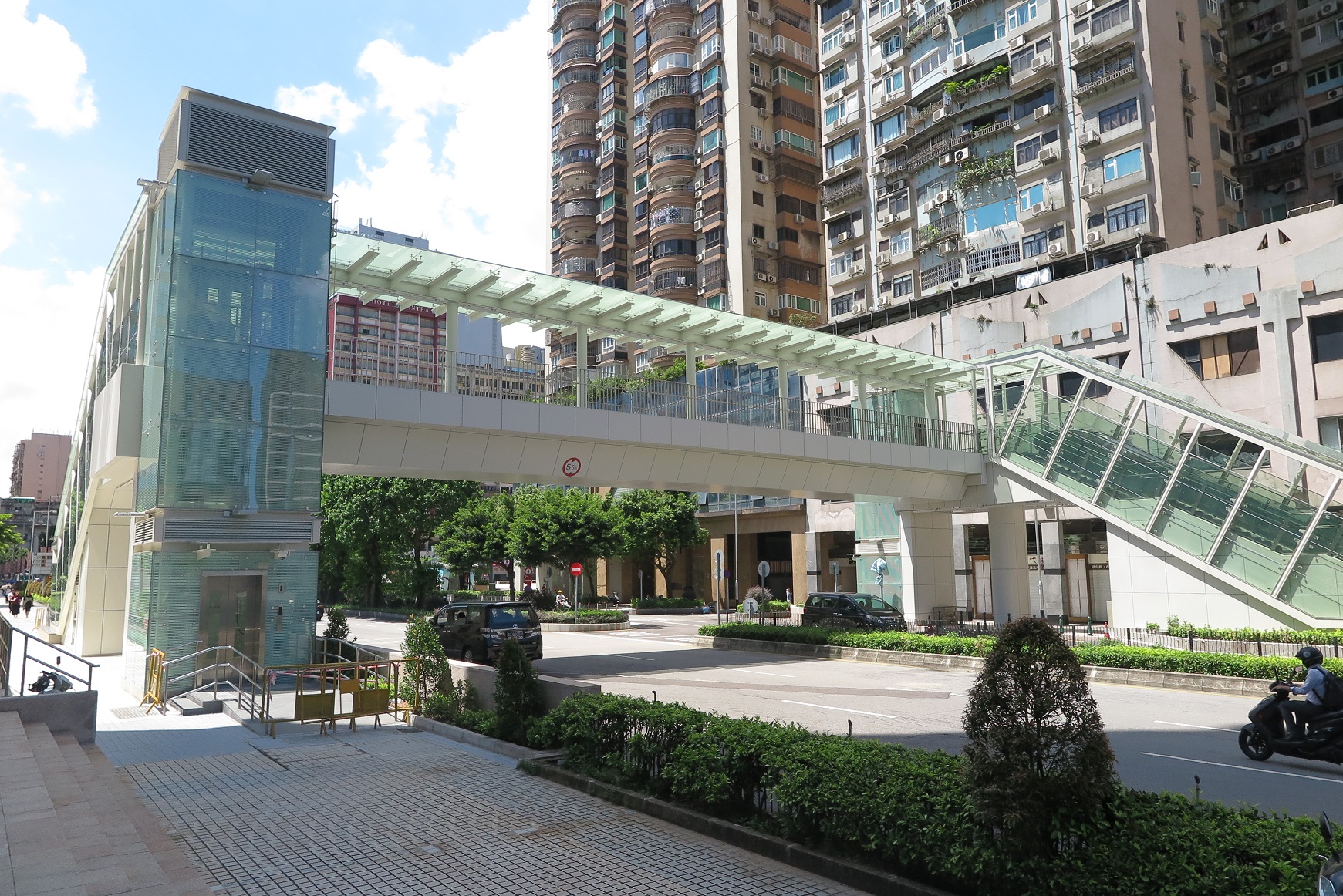 A Direcção dos Serviços de Solos, Obras Públicas e Transportes foi responsável pelo planeamento e supervisão da construção da referida passagem superior. Em finais de Julho, esta passagem foi transferida para o IACM para efeitos de gestão e, após a sua vistoria e testes efectuados, foi aberta oficialmente ao público. A passagem superior atravessa as faixas de rodagem da Avenida Doutor Mário Soares, ligando o passeio localizado junto do edifício Kuan Fat Garden ao passeio, do lado oposto, junto do edifício Finance and IT Center (FIT). Os dois acessos da passagem superior para peões estão equipados com elevadores para permitir aos cidadãos com necessidades especiais de mobilidade uma deslocação mais conveniente através de instalações sem barreiras arquitectónicas, dispondo ainda de escadas rolantes e escadas, para melhorar o ambiente de circulação pedonal.