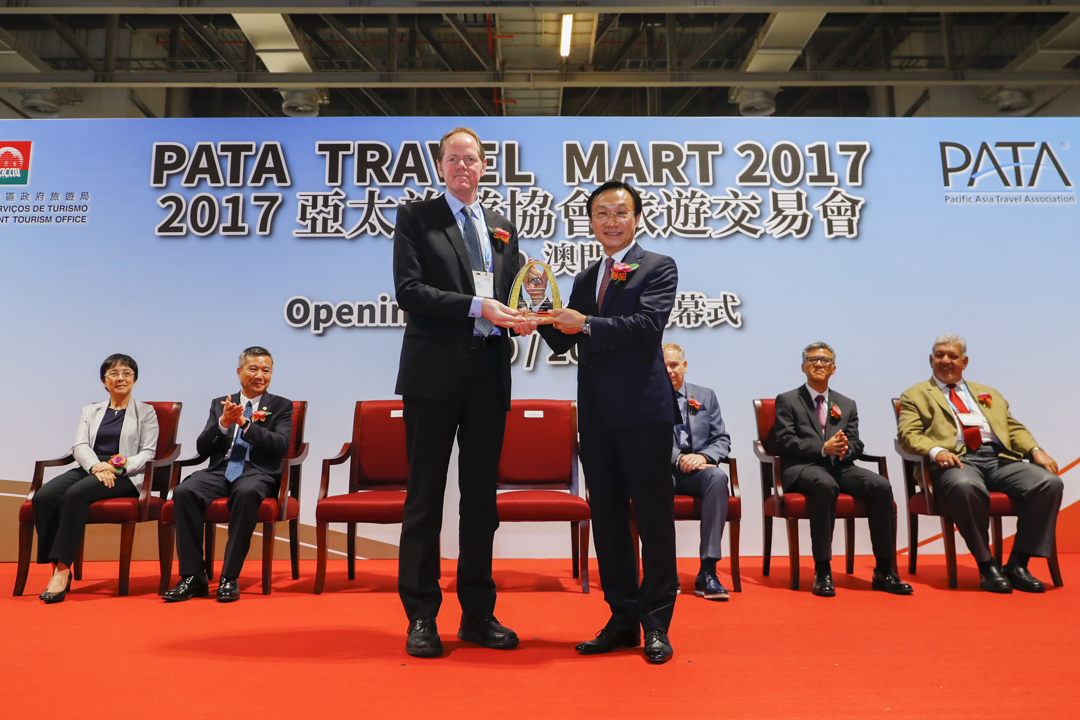 O Secretário para os Assuntos Sociais e Cultura, Alexis Tam, presidiu à cerimónia de corte de fita inaugural do evento, em conjunto com o vice-presidente da PATA, Chris Bottrill, o director executivo da PATA, Mario Hardy, o director do Centro de Intercâmbio de Turismo da Ásia da Administração Nacional do Turismo da China, Li Jianping, o chefe do Gabinete do Secretário para os Assuntos Sociais e Cultura, Ip Peng Kin, a directora da DST, Maria Helena de Senna Fernandes e o director-general do Turismo da Malásia, Datuk Seri Mirza Mohammad Taiyab. Na ocasião, o vice-presidente da PATA agraciou o Secretário para os Assuntos Sociais e Cultura com um Prémio Especial da associação em reconhecimento do apoio dado na realização da PATA Travel Mart (PTM).