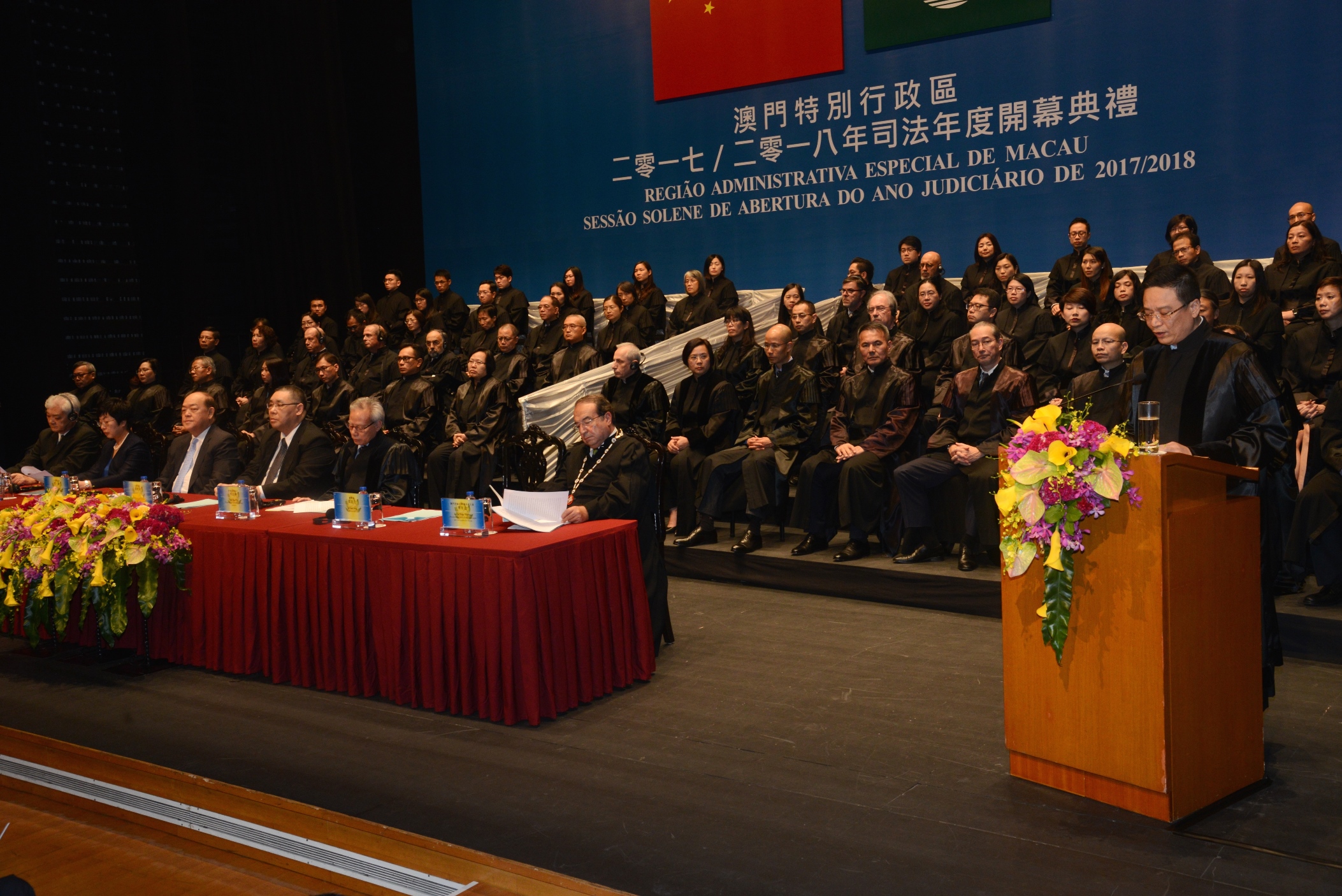 Realizou-se a Sessão Solene de Abertura do Ano Judiciário de 2017/2018, no dia 18 de Outubro, pelas 15h30, no Pequeno Auditório do Centro Cultural de Macau. O Chefe do Executivo, Chui Sai On, presidiu à Sessão que contou com a presença na tribuna de honra do Presidente da Assembleia Legislativa, Ho Iat Seng, do Presidente do Tribunal de Última Instância, Sam Hou Fai, da Secretária para a Administração e Justiça, Chan Hoi Fan, do Procurador, Ip Son Sang, do Presidente da Comissão Independente para a Indigitação de Juízes, Lau Cheok Va, e do Presidente da Direcção da Associação dos Advogados de Macau, Jorge Neto Valente.