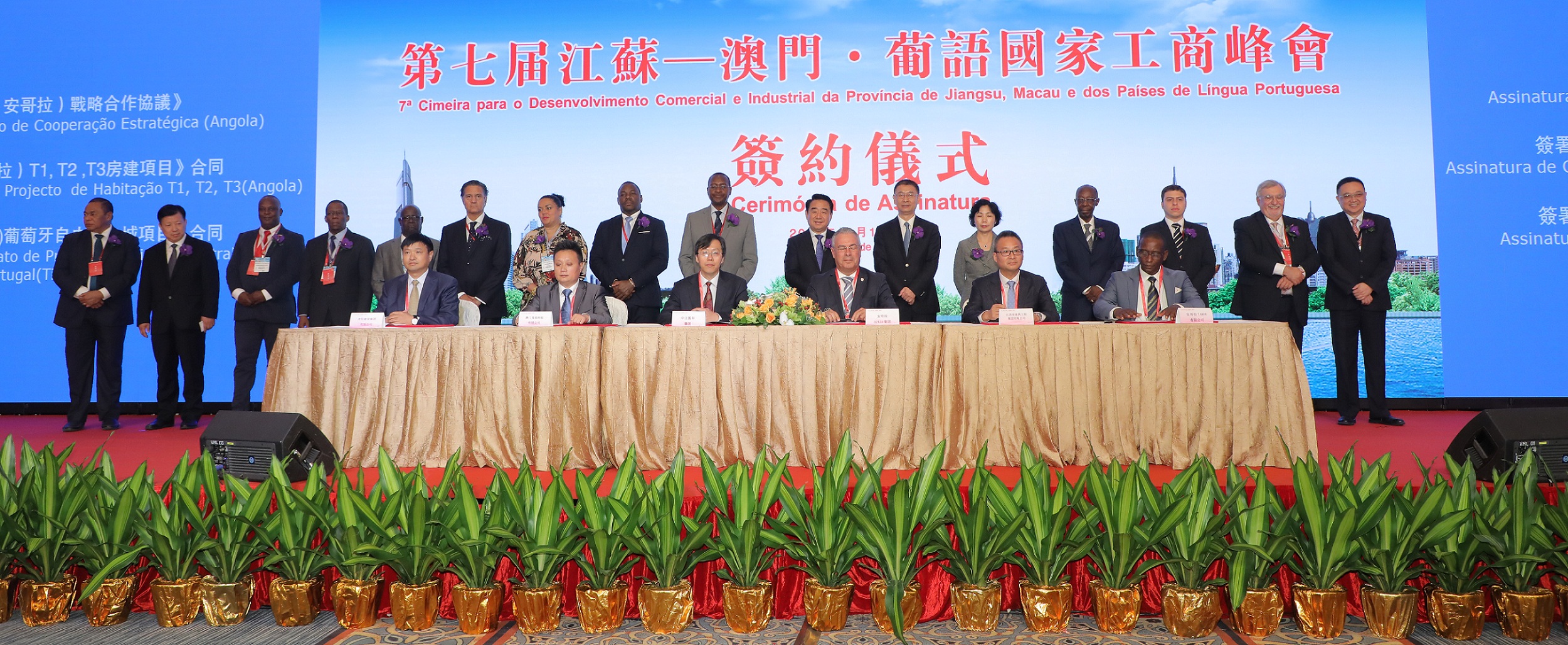 A “7.ª Cimeira para o Desenvolvimento Comercial e Industrial da Província de Jiangsu, Macau e dos Países de Língua Portuguesa” tem como objectivo impulsionar o intercâmbio Jiangsu-Macau, injectar mais dinamismo na construção da plataforma para a promoção da cooperação económica e comercial e reunir os recursos de todos os sectores. Segundo o Vice Governador do Governo Popular da Província de Jiangsu, Sr. Chen Zhenning, a Cimeira já foi realizada por seis anos consecutivos em Macau, tendo-se tornado uma janela de intercâmbio económico e cultural e de cooperação integral entre Jiangsu, Macau e os países lusófonos. É esperado que, aproveitando a plataforma sino-lusófona assumida por Macau, seja reforçada a cooperação em capacidade produtiva com os Países de Língua Portuguesa e promovido o processo de industrialização dos mesmos, pretendendo-se, ainda, desenvolver actividades promocionais de comércio direccionadas para os países de expressão portuguesa e estabelecer uma plataforma de promoção comercial com eficácia, no sentido de elevar a escala comercial. Durante a Cimeira, foi assinado o Memorando sobre a Implementação do Programa de Bolsas de Orientação “Jasmine” para Alunos de Língua Portuguesa da Província de Jiangsu entre os Serviços da Educação da Província de Jiangsu e Secretariado Permanente do Fórum para a Cooperação Económica e Comercial entre a China e os Países de Língua Portuguesa (Macau), entre outros protocolos.