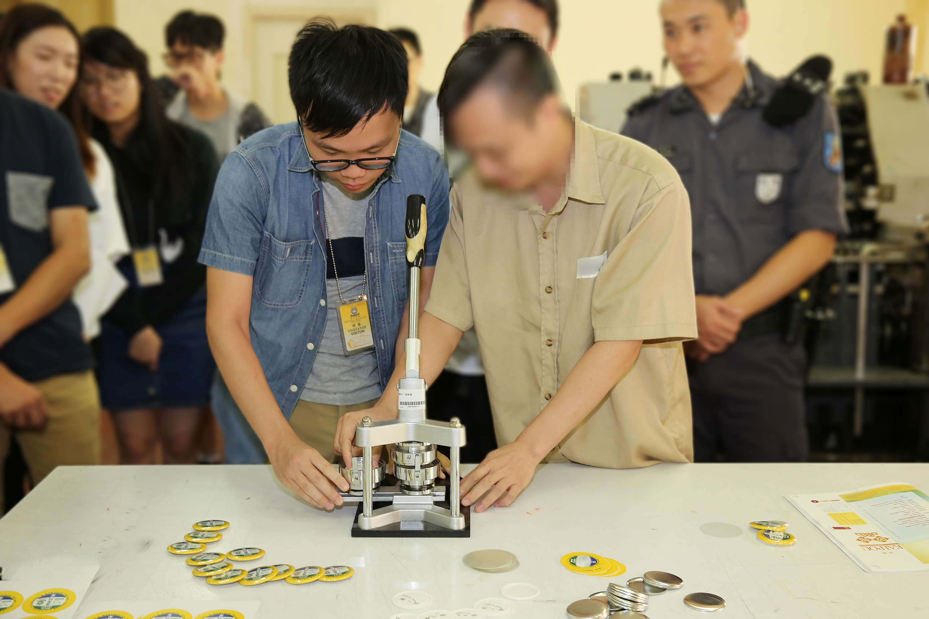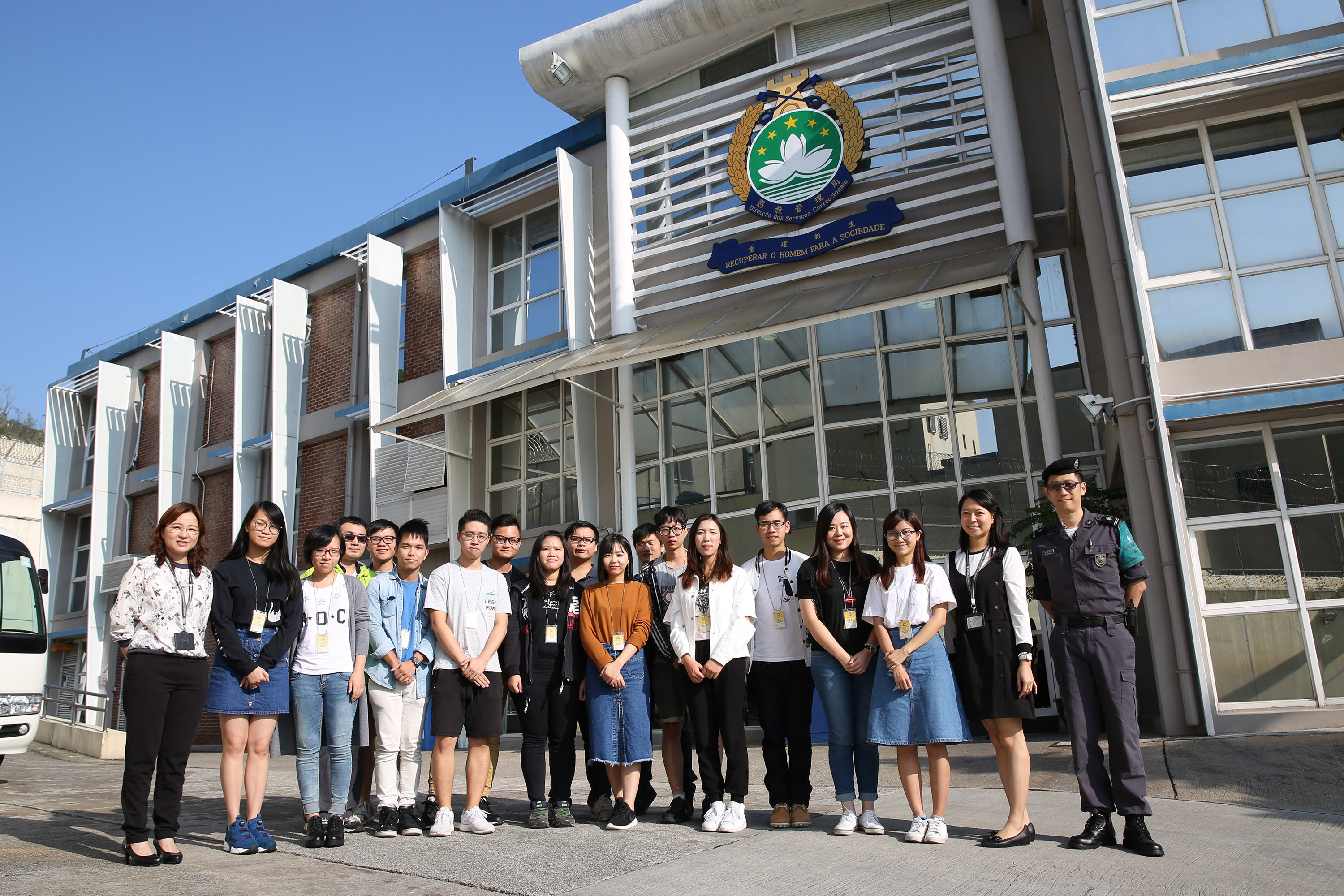 Na actividade, a DSC para além de apresentar as suas funções, o funcionamento quatidiano e as instalações e equipamentos do Estabelecimeno Prisional de Coloane aos participantes, foi organizada especialmente, uma experimentação da formação profissional dos reclusos aos participantes, permitindo estes a manufactuarem artesanatos juntamente com 4 reclusos adolescents na oficina de tipografia. Através desta oportunidade valiosa de intercâmbio directo, os jovens tiveram uma conversa com os reclusos, contando uns aos outros os pormenores da vida e, os reclusos adolescentes partilharam, por iniciativa própria, as suas histórias e experiências do crime que causaram a perda de liberdade. Depois de ouvir as experiências contados pelos reclusos, os participantes tomaram consciência de serem mais alertados, no sentido de afastar das seduções que possam causar o cometimento de crime, caso contrário, correm risco de assumir as consequências legais graves.