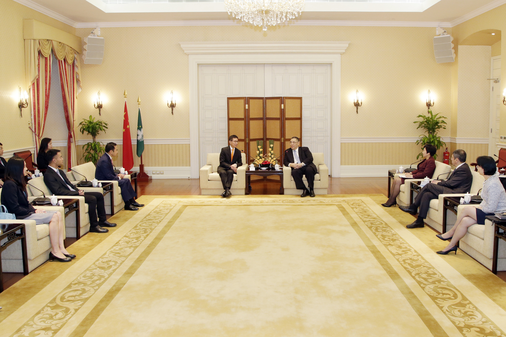 O encontro contou ainda com a presença da secretária para a Administração e Justiça, Sónia Chan, do secretário para os Transportes e Obras Públicas, Raimundo do Rosário, e da chefe do Gabinete do Chefe do Executivo, O Lam.