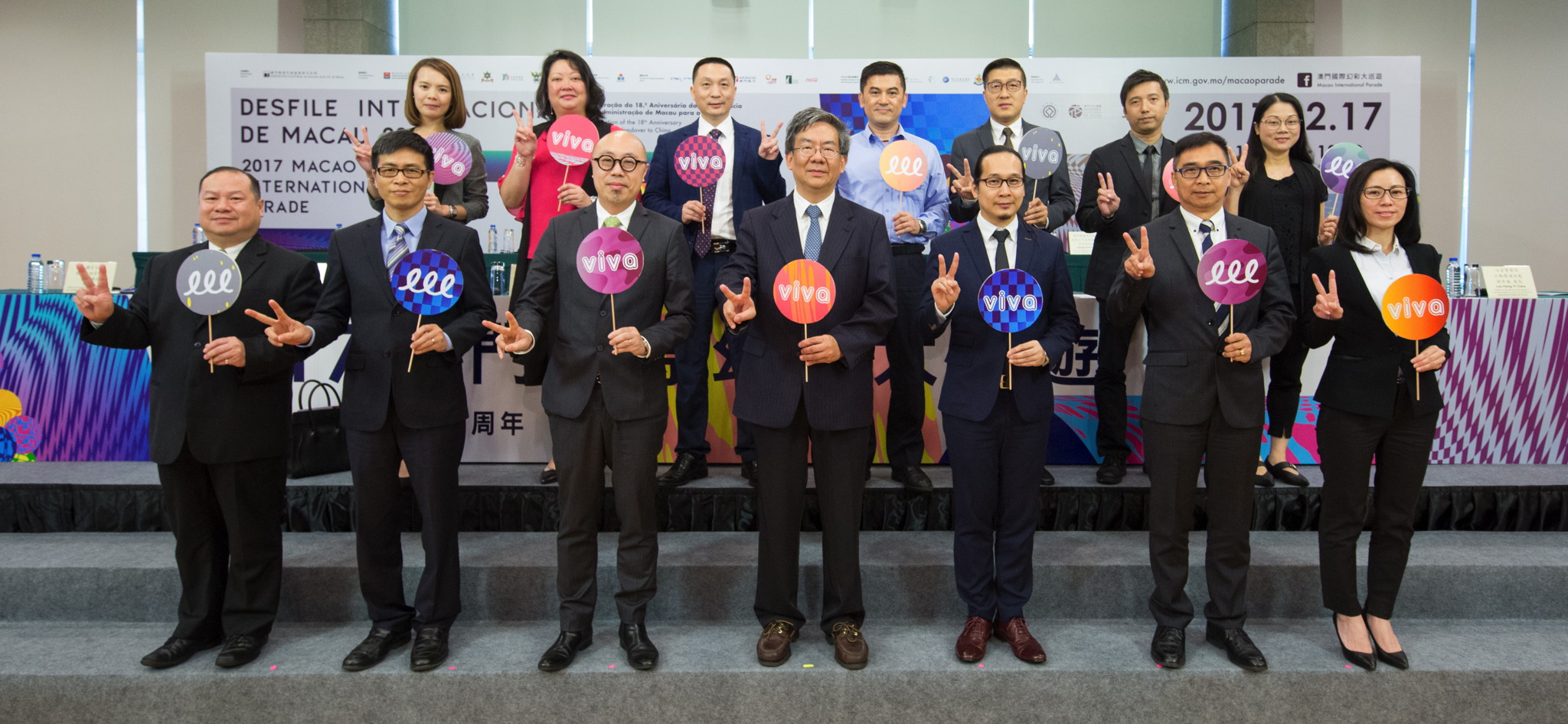 O Desfile é organizado pelo Instituto Cultural e co-organizado pela Direcção dos Serviços de Turismo, Instituto do Desporto, Instituto para os Assuntos Cívicos e Municipais, Corpo de Polícia de Segurança Pública de Macau, Direcção dos Serviços para os Assuntos de Tráfego, Corpo de Bombeiros e Direcção dos Serviços de Educação e Juventude. A TDM – Teledifusão de Macau S.A. fará a transmissão em directo televisiva ao vivo. O Desfile conta com a Companhia de Telecomunicações de Macau, S.A.R.L. como parceira de telecomunicações; e ainda com o apoio total da Companhia de Transportes Aéreos Air Macau, S.A.R.L., da Companhia de Electricidade de Macau – CEM, S.A, do Centro de Convenções e Entretenimento da Torre de Macau, da Cola-Cola Macau Limitada e de AJ Hackett. O IC deixa ainda agradecimentos à União Geral das Associações dos Moradores de Macau e ainda às unidades de apoio aos Embaixadores do VIVA, nomeadamente da Associação de Voluntários da Sucursal de Macau do Banco da China, da Associação para Desenvolvimento dos Jovens Voluntários da Comunidade de Macau, da Associação Geral de Voluntários de Macau, da associação The Boys' Brigade Macau, da Associação dos Escoteiros de Macau e da Associação de Voluntários de Serviço Social de Macau.