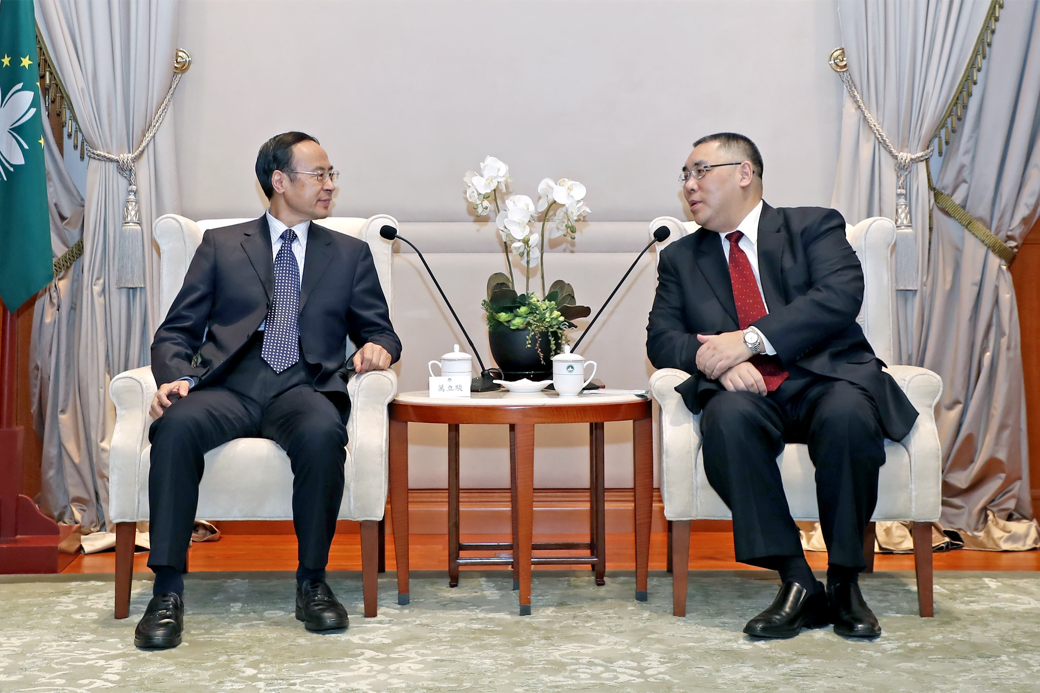 O Chefe do Executivo, Chui Sai On, teve, hoje (13 de Novembro), um encontro com o presidente da federação nacional de chineses ultramarinos retornados (All-China Federation of Returned Overseas Chinese), Wan Lijun, na Sede do Governo, onde trocaram opiniões sobre o reforço da participação e contributo na construção da iniciativa «Uma Faixa, Uma Rota» pelos chineses ultramarinos em Macau, o desenvolvimento da Grande Baía Guangdong-Hong Kong-Macau e trabalhos relacionados com os jovens, entre outros.