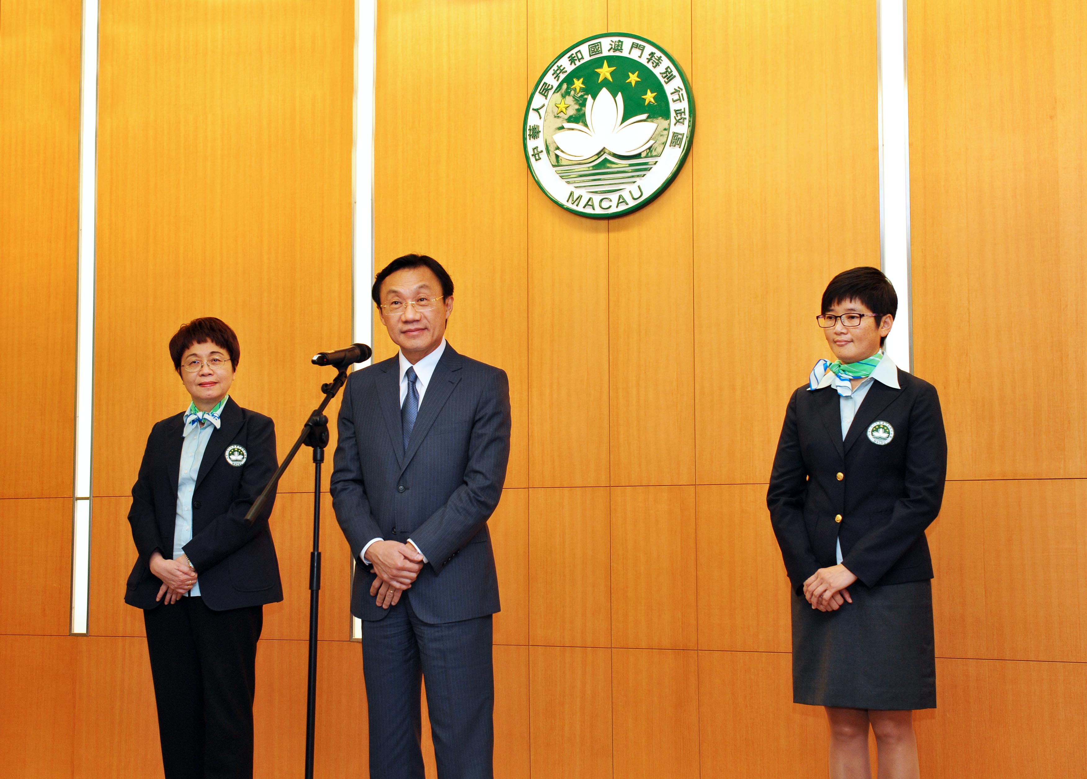 A Cerimónia de Despedida teve lugar no dia 20 de Novembro na Sede do Governo da RAEM e o Secretário para os Assuntos Sociais e Cultura, Alexis, Tam Chon Weng entregou a Bandeira da RAEM à Delegação Escolar de Macau. Na ocasião, o Secretário para os Assuntos Sociais e Cultura, Alexis, Tam Chon Weng disse no seu discurso, que o Governo da RAEM atribuiu sempre a importância ao desenvolvimento diversificado dos estudantes e promoveu activamente a participação dos estudantes nas práticas desportivas, prestando o apoio e assistência, ao desenvolvimento de desporto escolar. Incentivou ainda, os atletas a trocarem mais experiências e estabelecerem intercâmbios com os atletas provenientes de regiões da área do Pacífico, com vista a obter uma oportunidade de aprendizagem e ampliar o seu horizonte. A Directora dos Serviços de Educação e Juventude e presidente honorária da delegação, Leong Lai, encorajou os atletas a valorizarem a oportunidade de participação para, assim, obterem experiências de competição, melhorarem o seu nível desportivo, bem como aproveitarem esta oportunidade para fortalecer o intercâmbio com os estudantes de outros países e regiões, de modo a demonstrar a boa imagem dos estudantes de Macau e a promover a amizade e o espírito desportivo.