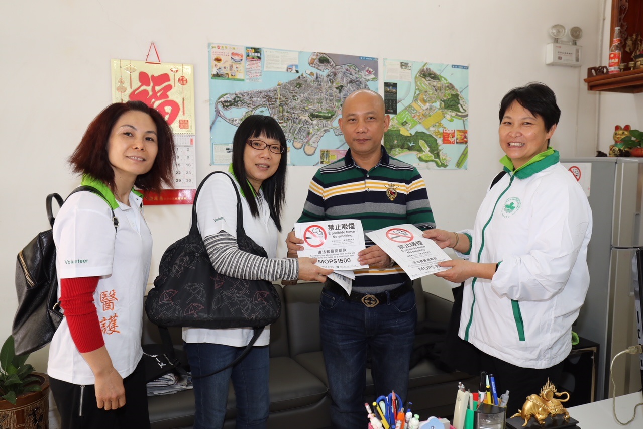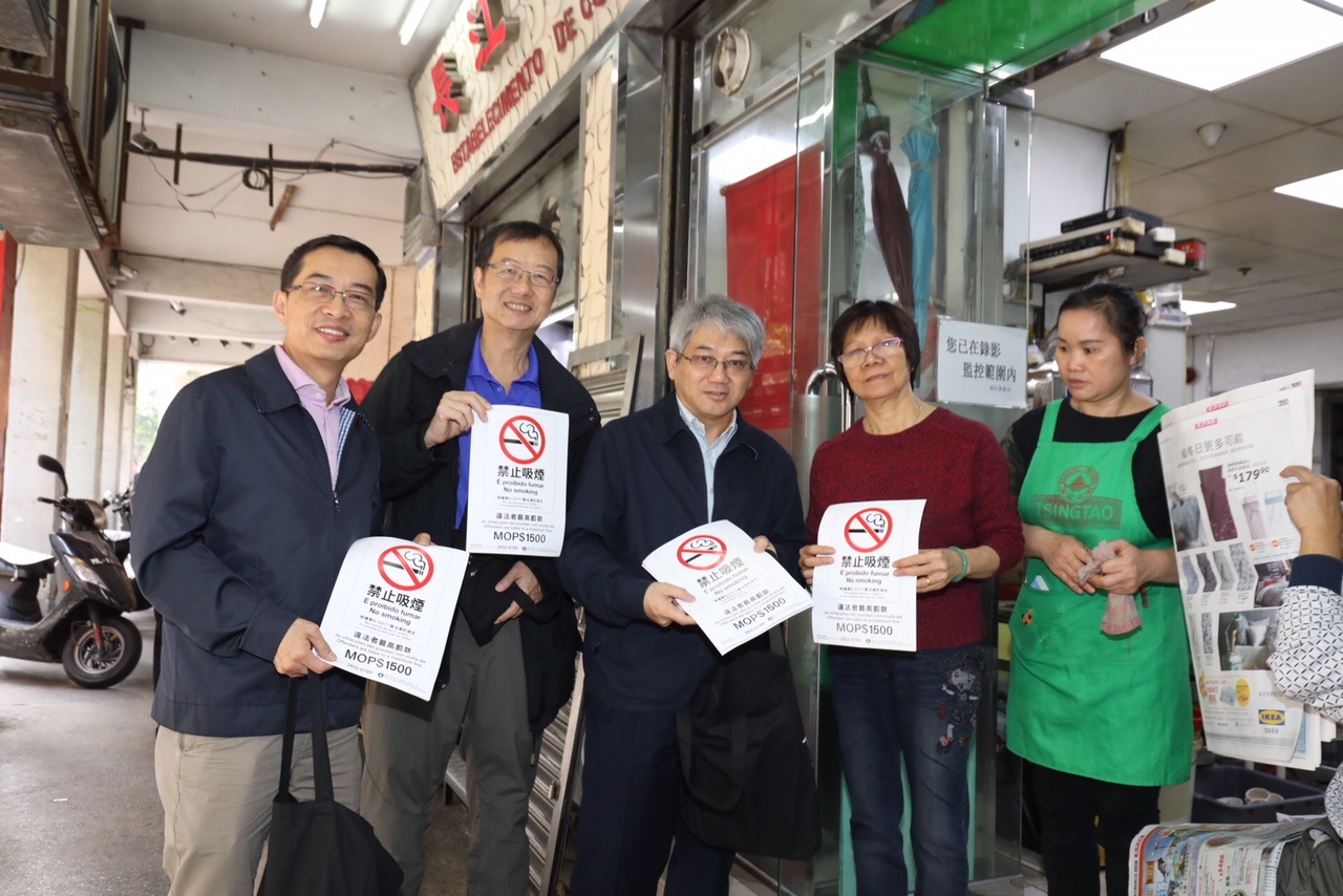 Os Serviços de Saúde realizaram sábado, no dia 2 de Dezembro, com os voluntários da União Contra o Tabagismo a 2.ª acção promocional de divulgação do Novo regime de Prevenção e Controlo do Tabagismo. Estiveram presentes na acção o director dos Serviços de Saúde Dr. Lei Chin Ion, o seu subdirector Dr. Cheang Cheng Ip, o chefe do Gabinete para a Prevenção e Controlo de Tabagismo, Dr. Teng Chi Hou, e em conjunto com mais de 100 voluntários da Associação das Águias Voadoras de Macau, da Cáritas de Macau, da Associação de Nova Juventude Chinesa de Macau, da União Geral das Associações dos Moradores de Macau, da Smoke-free & Healthy Life Association of Macau, da Associação dos Voluntários de Pessoal Médico de Macau e da Associação Geral das Mulheres de Macau. O objectivo da acção visou distribuir os novos dísticos de interdição de fumar e productos promocionais junto dos estabelecimentos comerciais do bairro Fai Chi Kei, de modo a assegurar uma eficaz implementação da nova lei de controlo do tabagismo.
