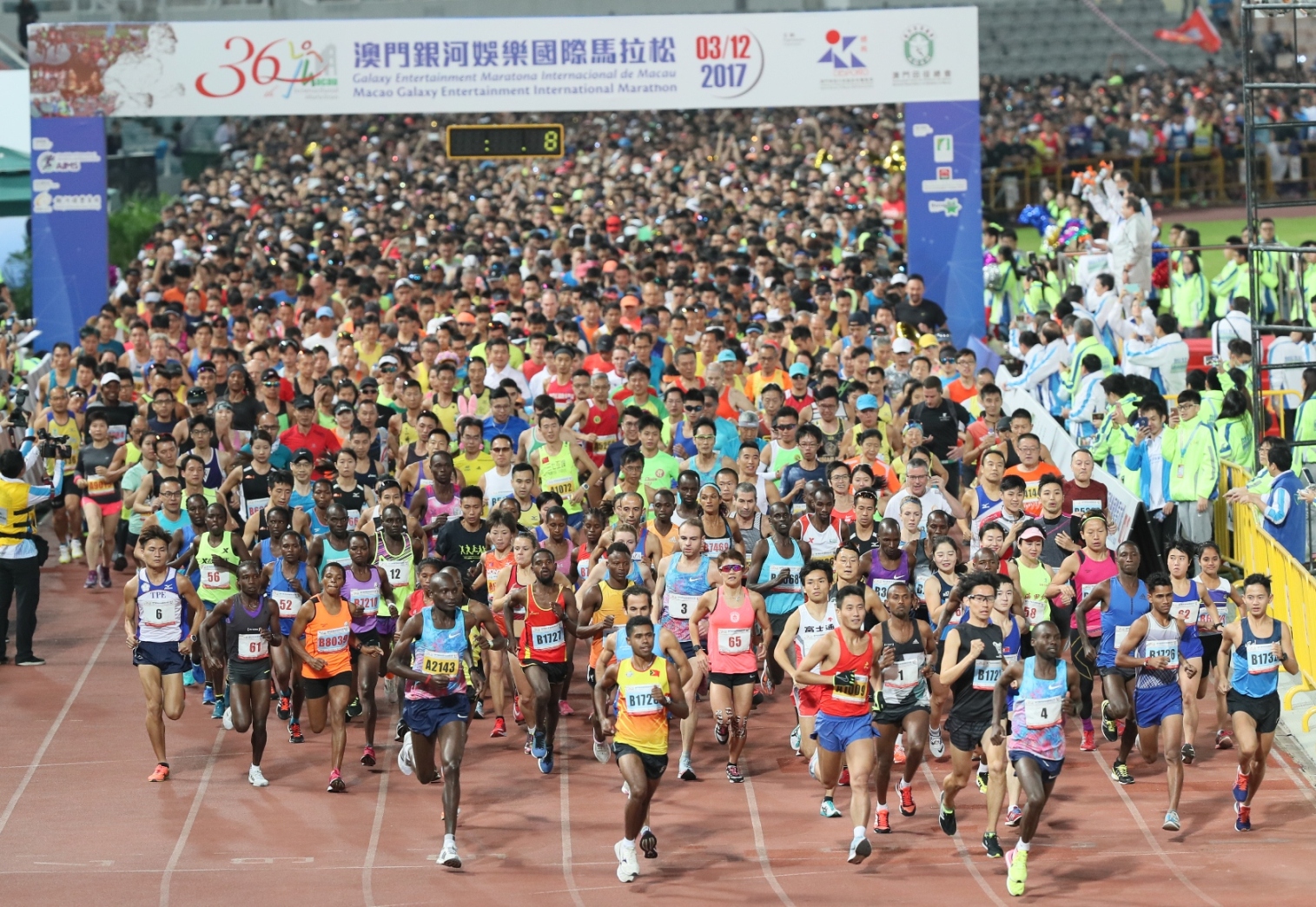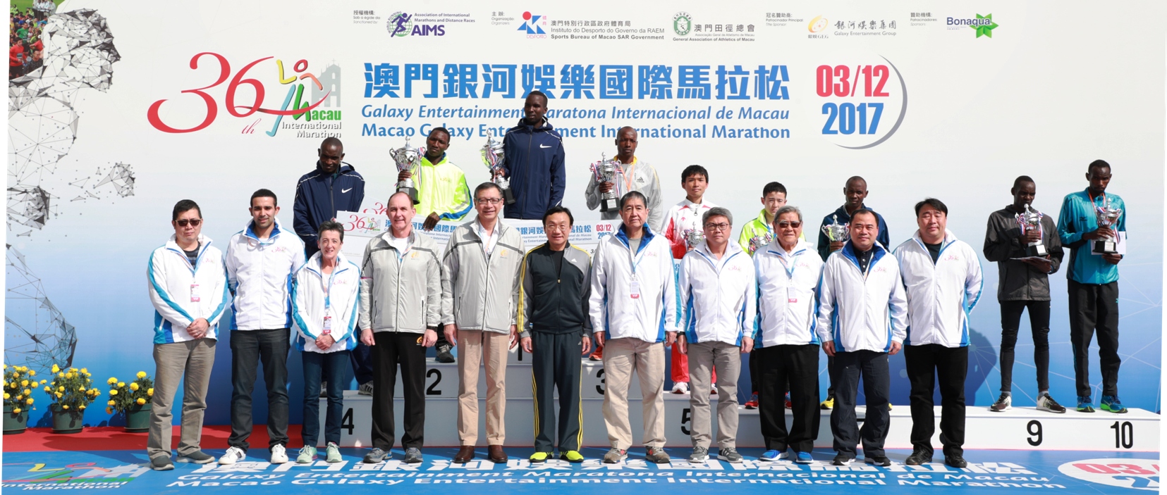 Realizou-se hoje, dia 3, a “Galaxy Entertainment Maratona Internacional de Macau de 2017”, com sucesso, uma organização conjunta entre o Instituto do Desporto e a Associação Geral de Atletismo de Macau, no Estádio do Centro Desportivo Olímpico, e como patrocinador principal a Galaxy Entertainment Group, onde participaram cerca de 12000 atletas vindos de mais que 50 países/regiões em diferentes categorias. Entre os atletas convidados, o atleta da Quênia Felix Kiptoo Kirwa venceu a corrida com o tempo de 2:10:01 e a atleta de Bahrain Eunice Jepkirui Kirwa venceu a prova feminina com o tempo de 2:29:12, com ambos a baterem os recordes. Foram vencedores na categoria de atletas de Macau, Chan Chong Ip nos masculinos, e Hoi Long nos femininos. O Secretário para os Assuntos Sociais e Cultura Doutor Alexis Tam e outros convidados presidiram a partida da Maratona.
