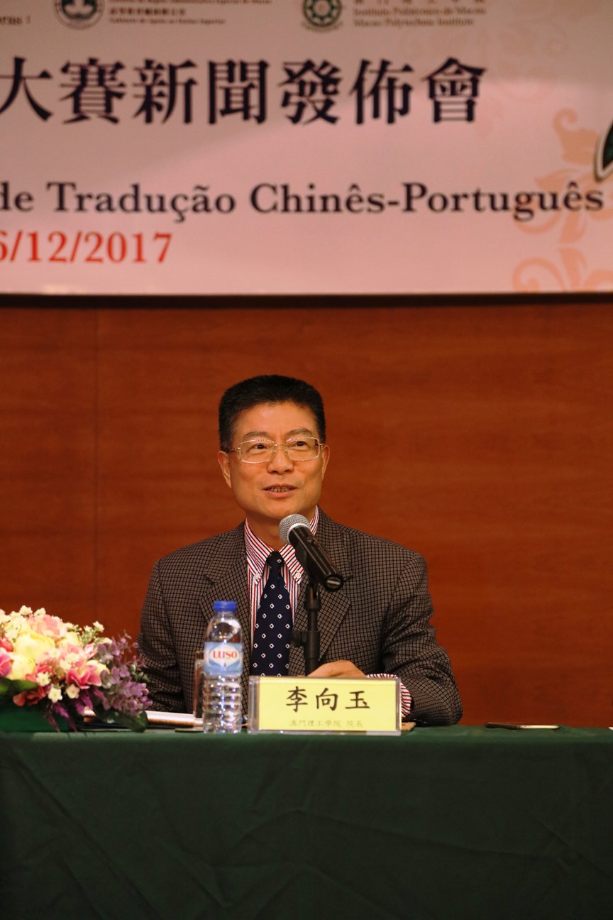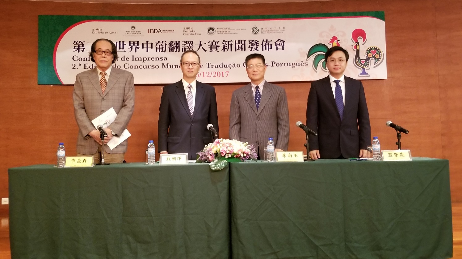A conferência de imprensa da 2ª edição do Concurso Mundial de Tradução Chinês-Português, que teve lugar às 16h00, no dia 06 de Dezembro (quarta-feira), foi presidida pelo Coordenador do Gabinete de Apoio ao Ensino Superior, Doutor Sou Chio, Presidente do Instituto Politécnico de Macau, Professor Doutor Lei Heong Iok, Vice-presidente do Instituto Politécnico de Macau, Professor Doutor Marcus Im e Presidente da Comissão Académica da 2ª edição do Concurso Mundial de Tradução Chinês-Português, Professor Doutro James Li, publicando e apresentando o regulamento e as informações sobre o Concurso. O senhor coordenador do GAES, Sou Chio Fai, aponta que Macau desempenha um papel muito importante e insubstível enquanto base de formação de talentos bilingues chinês-português e o GAES oferece pleno apoio a esforços de promover o desenvolvimento desse aspecto. No ano passado, com a iniciativa proposta pelo IPM, a primeira edição do Concurso Mundial de Tradução Chinês-Português foi realizado, com grande sucesso, conjuntamente pelo GAES e pelo IPM. O senhor coordenador espera que a segunda edição do Concurso possa atrair mais equipas e obter mais êxitos. Quando o senhor Presidente do IPM, Prof. Lei Heong Iok, faz votos de um pleno sucesso ao Concurso, ainda afirma que o IPM se dedica desde sempre ao ensino-aprendizagem de tradução Chinês-Português e o Concurso também visa fortalecer a comunicação de técnicas de tradução Chinês-Português entre estudantes das instituições de ensino superior de todo o mundo e desenvolver a formação de tradutores profissionais de Chinês-Português, aproveitando condições favoráveis do IPM para dar contributos para o desenvolvimento e a promoção do ensino-aprendizagem de Português.