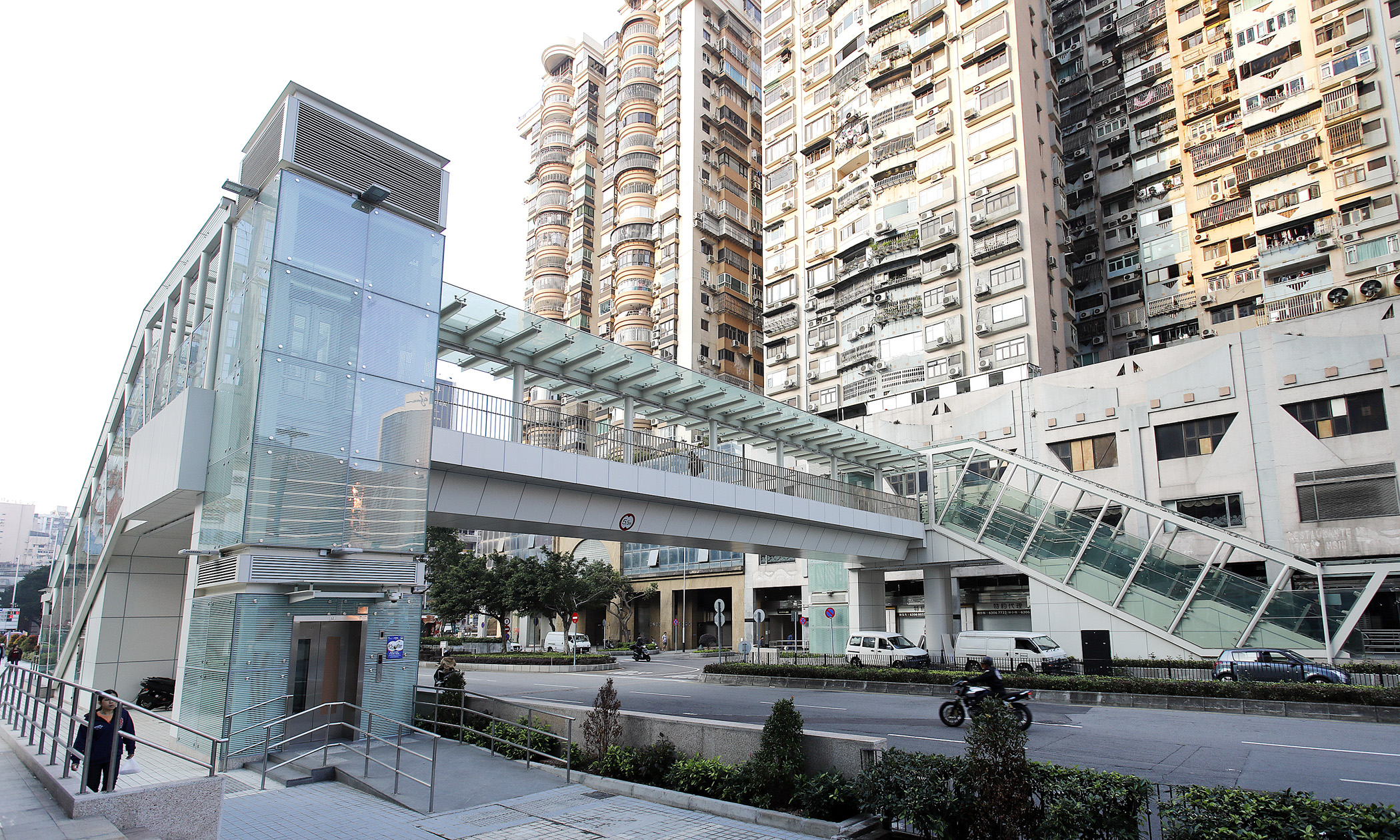A Avenida Doutor Mário Soares é uma das artérias principais da zona da Praia Grande. A passagem superior para peões estabelece a ligação entre a zona envolvente ao Edifício Kun Fat Fa Yuen e os passeios pedonais que ficam do lado oposto e entrou em funcionamento nos princípios de Agosto do corrente ano, no sentido de optimizar os equipamentos de travessia pedonal desta zona, proporcionar condições mais seguras de travessia pedonal e separar devidamente o trânsito rodoviário do pedonal. A estrutura principal da passagem superior para peões é basicamente de aço e a cobertura de vidro. Os dois acessos da passagem superior para peões encontram-se apetrechados com elevadores e escadas rolantes. Os elevadores constituem equipamentos sem barreias arquitectónicas. Além disso, os elevadores têm um sistema eco-eficientes que permite economizar energia. Em caso de emergência e caso o elevador fique suspenso, este retorna ao rés-do-chão, a porta abre automaticamente e é automaticamente accionado o mecanismo de alerta para reparação.