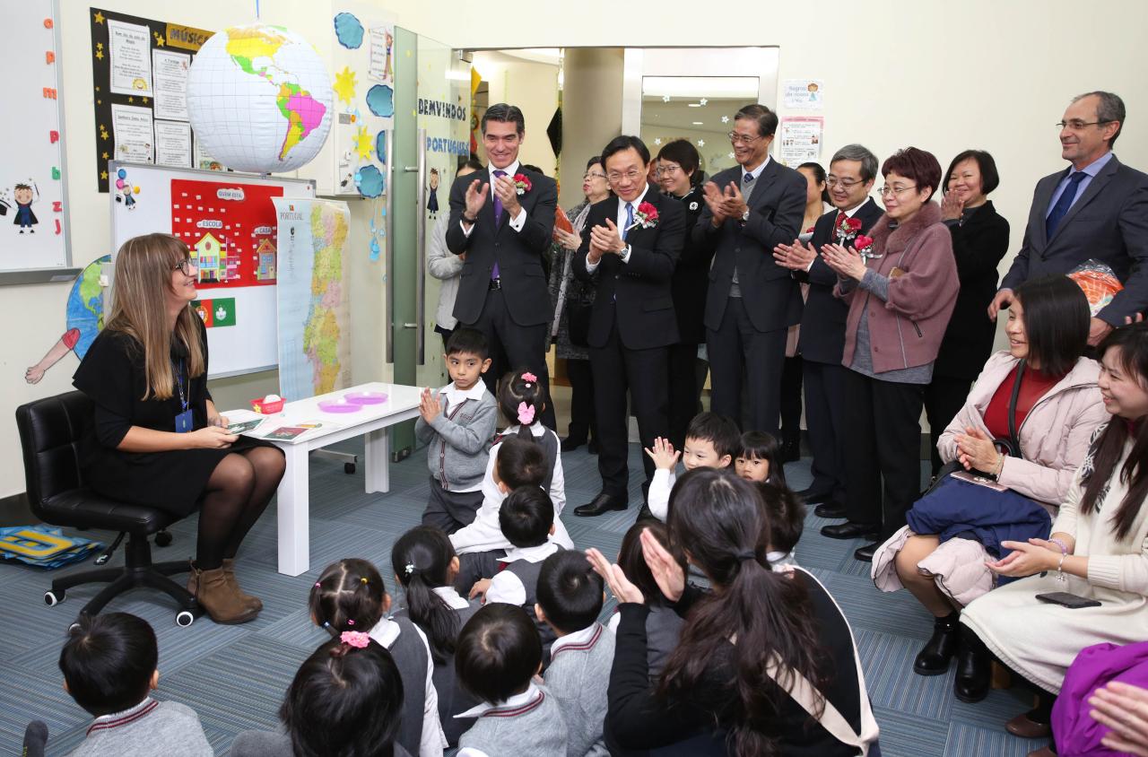Realizou-se, no dia 12 de Janeiro de 2018, a Cerimónia de inauguração do novo edifício escolar da Escola Oficial Zheng Guanying, afecta à Direcção dos Serviços de Educação e Juventude (DSEJ), presidida pelo Senhor Secretário para os Assuntos Sociais e Cultura da RAEM, Alexis Tam Chon Weng, acompanhado pelo Cônsul-Geral de Portugal em Macau e Hong Kong, Vítor Sereno, pela Directora dos Serviços de Educação e Juventude, Leong Lai, pelo Chefe de Divisão do Departamento de Educação e Trabalhos Juvenis do Gabinete de Ligação do Governo Popular Central da RPC na RAEM, Gou Renmin, pela Directora da Escola Oficial Zheng Guanying, Wu Kit, pela Presidente da Associação dos Encarregados de Educação da Escola Oficial Zheng Guanying, Zhong Kit Hong e pela representante dos alunos, Lo Sam In.