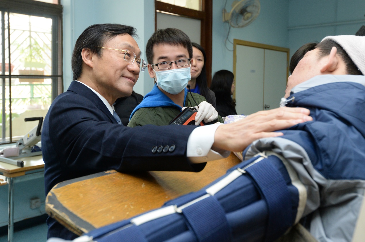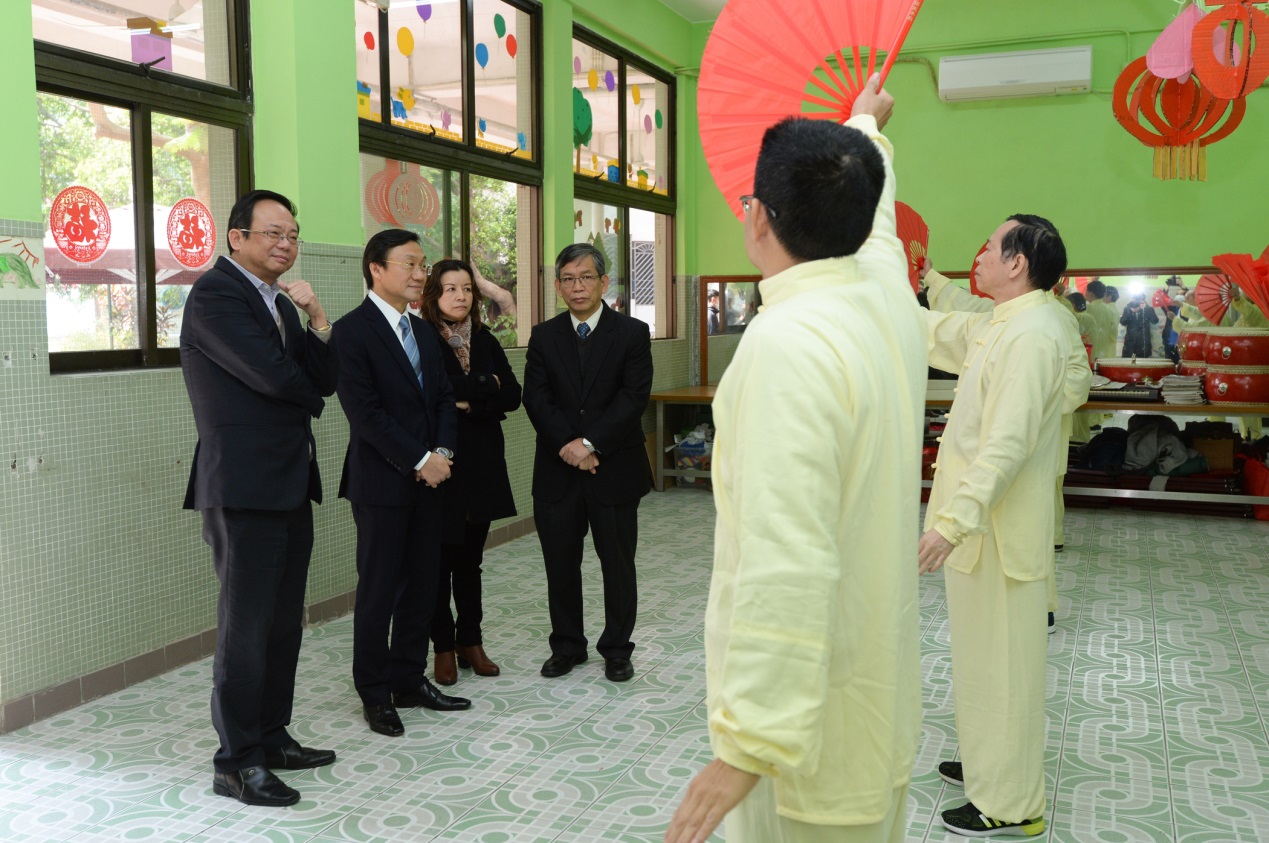 Além de ter visitado quartos, salas de tratamento e salas de actividade dos equipamentos atrás referidos, a fim de conhecer a vida diária e a situação de reabilitação dos utentes, bem como as diversas capacidades e talentos artísticos dos mesmos, o Secretário assistiu também a várias actividades interessantes realizadas pelos utentes, incluindo panificação, pintura, artesanato, leque Tai Chi, tecelagem, colheita de produtos agrícolas, entre outras. Na ocasião, os utentes tiveram a oportunidade de oferecer diversas lembranças por eles confeccionados ao Secretário, o qual, ao recebê-las, usou de imediato o cachecol oferecido, vivendo-se assim um momento particularmente carinhoso.