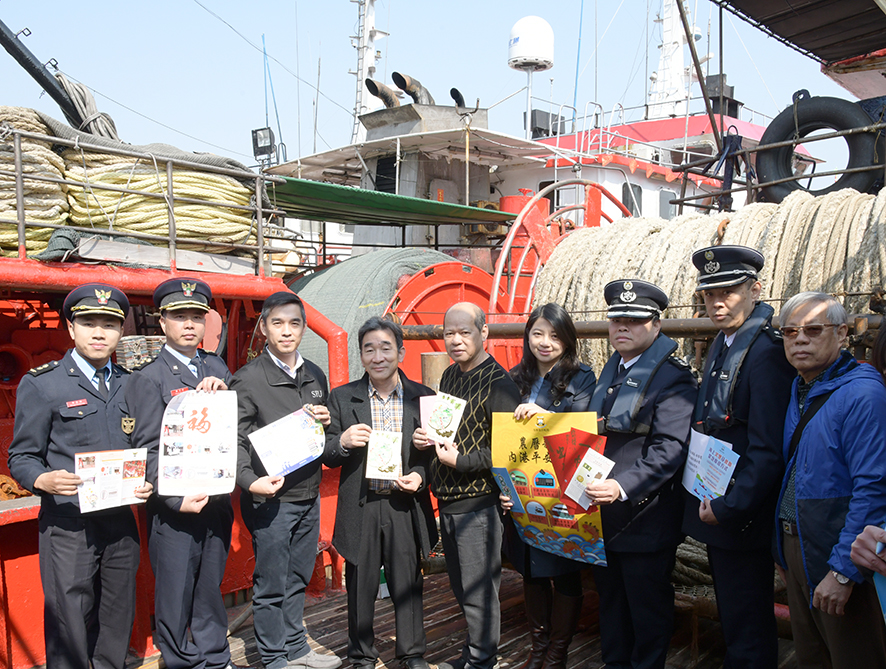 Antes e depois do Ano Novo Lunar de todos os anos, diversos navios de pesca voltam para o fundeadouro do Porto Interior de Macau para a passagem de ano. A fim de prevenir os incêndios e roubos nos navios de pesca ancorados no fundeadouro do Porto Interior, bem como prevenir a poluição marítima, os representantes das seguintes entidades fizeram uma visita a bordo das embarcações dos pescadores hoje de manhã: Direcção dos Serviços de Assuntos Marítimos e de Água (DSAMA), Serviços de Alfândega (SA), Serviços de Polícia Unitários (SPU), Corpo de Bombeiros (CB), Associação de Auxílio Mútuo de Pescadores (AAMP), e Associação para o Desenvolvimento de Pesca no Oceano e de Proprietários de Barcos de Macau (ADPOPBM). Durante a visita, foram distribuídos os materiais promocionais sobre a segurança e a limpeza marítima, com o objectivo de aumentar a consciência dos pescadores para o combate a incêndio, a prevenção de roubo e poluição.