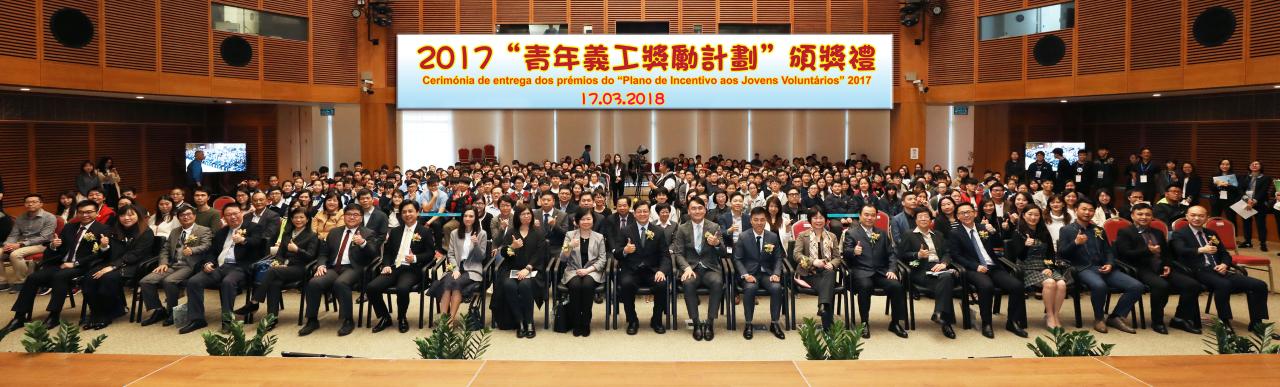 A Cerimónia de entrega dos prémios do “Plano de Incentivo aos Jovens Voluntários” 2017 organizado pela Direcção dos Serviços de Educação e Juventude (DSEJ) e realizado pelo Hope International Volunteer Group Macao em colaboração com o Centro de Ciência de Macau, S.A., teve lugar no dia 17 de Março de 2018 (Sábado), no Centro de Ciência de Macau. A actividade contou com a participação de cerca de 350 pessoas e teve como objectivo elogiar e reconhecer o contributo dos jovens voluntários em prol da sociedade, promovendo a continuidade da participação activa dos jovens voluntários e incentivando o voluntariado, bem como estimulando a adesão a este serviço por parte dos sectores sociais e jovens, desenvolvendo o espírito de ajuda ao próximo e a si próprio, inserindo energia positiva na sociedade de Macau.