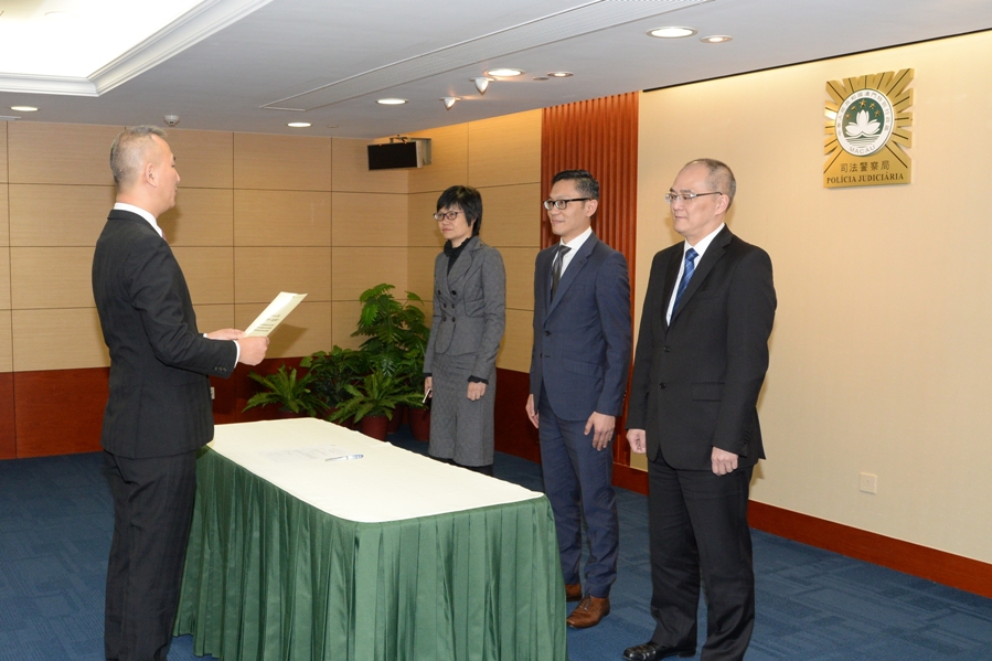 No dia 23 de Março de 2018, no Edifício da Polícia Judiciária realizou-se a cerimónia de tomada de posse de uma chefia, a qual foi presidida pelo Director, Sit Chong Meng e contou ainda com a presença dos Subdirectores, Tou Sok Sam e Chan Kin Hong, e de chefias de várias subunidades desta Polícia. Nela, tomou posse o inspector de 1ª classe, Luís Leong, que assumiu as funções de chefe do Departamento de Investigação de Crimes relacionados com o Jogo e Económicos.